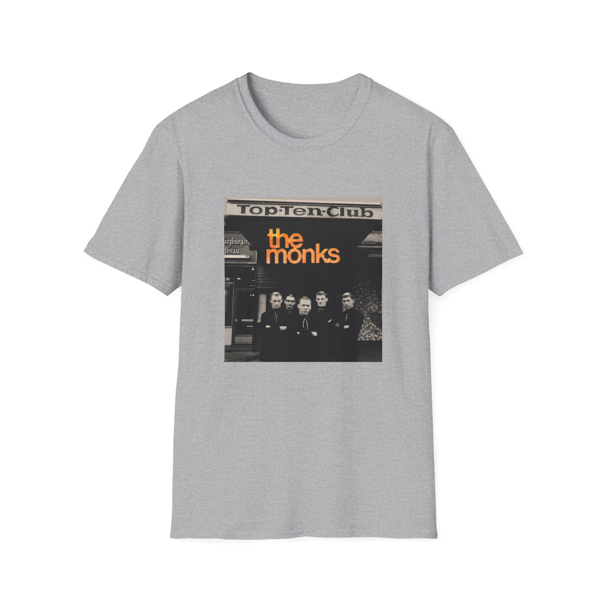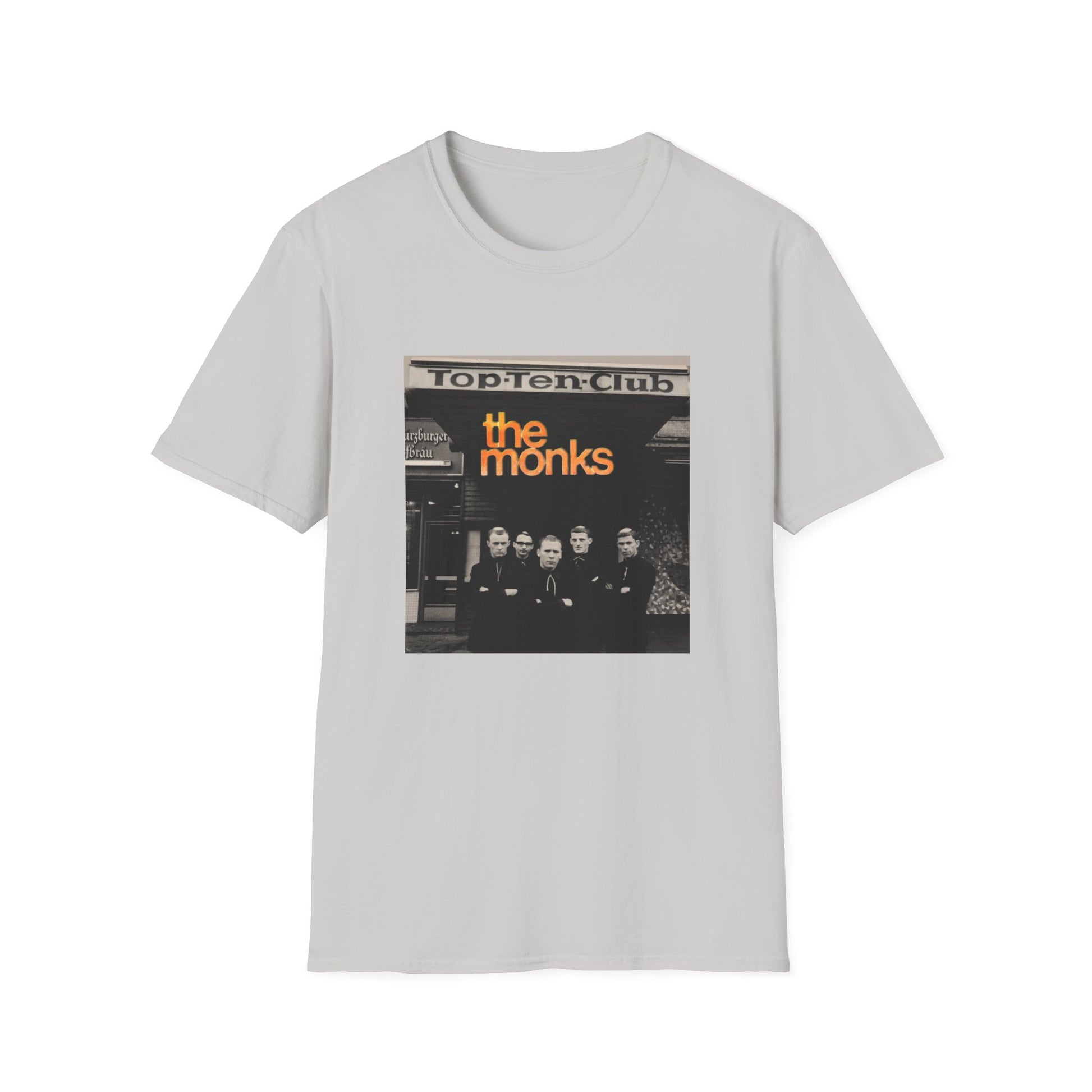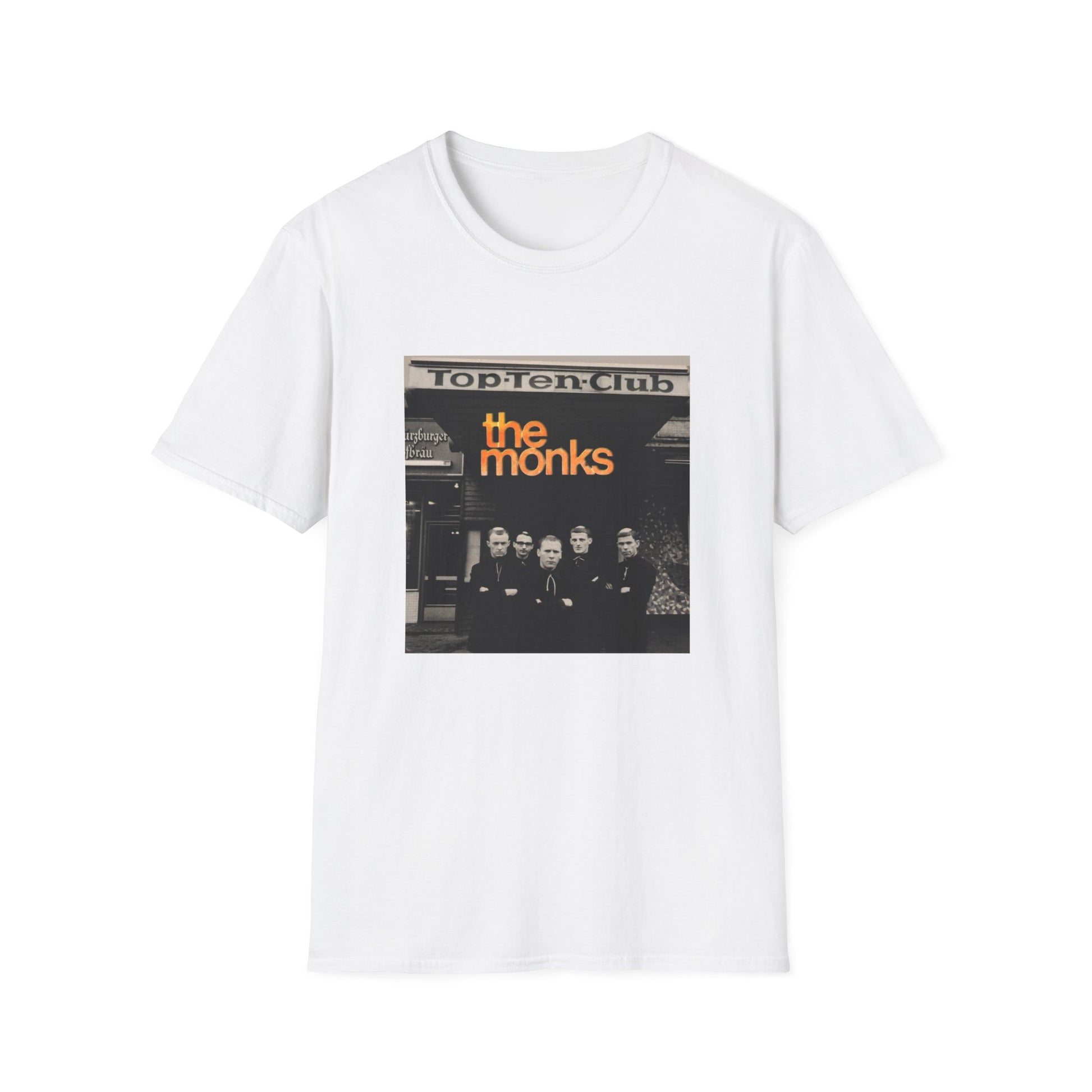 1960s experimental rock n roll band the monks in front of the top ten club tshirt