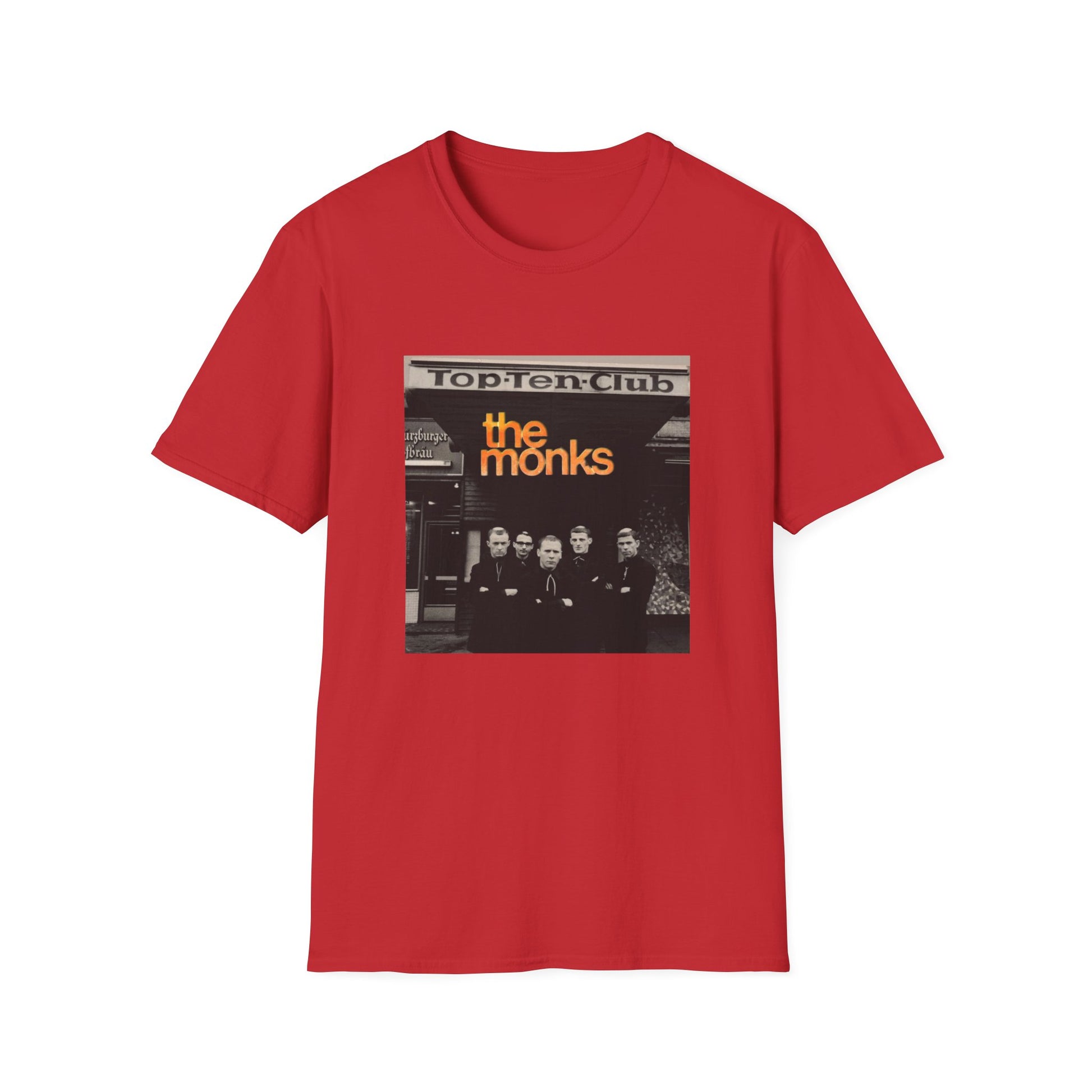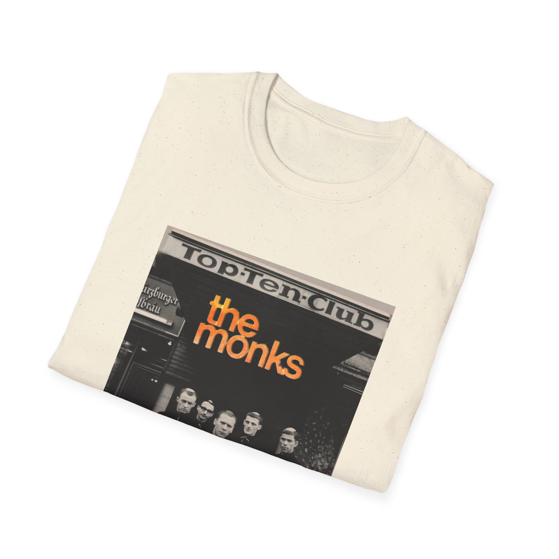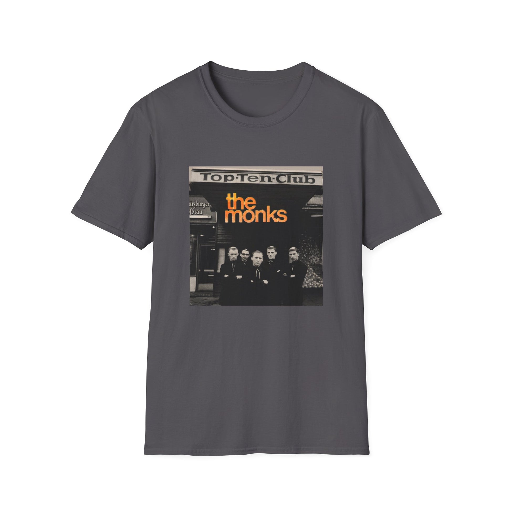 1960s experimental rock n roll band the monks in front of the top ten club tshirt