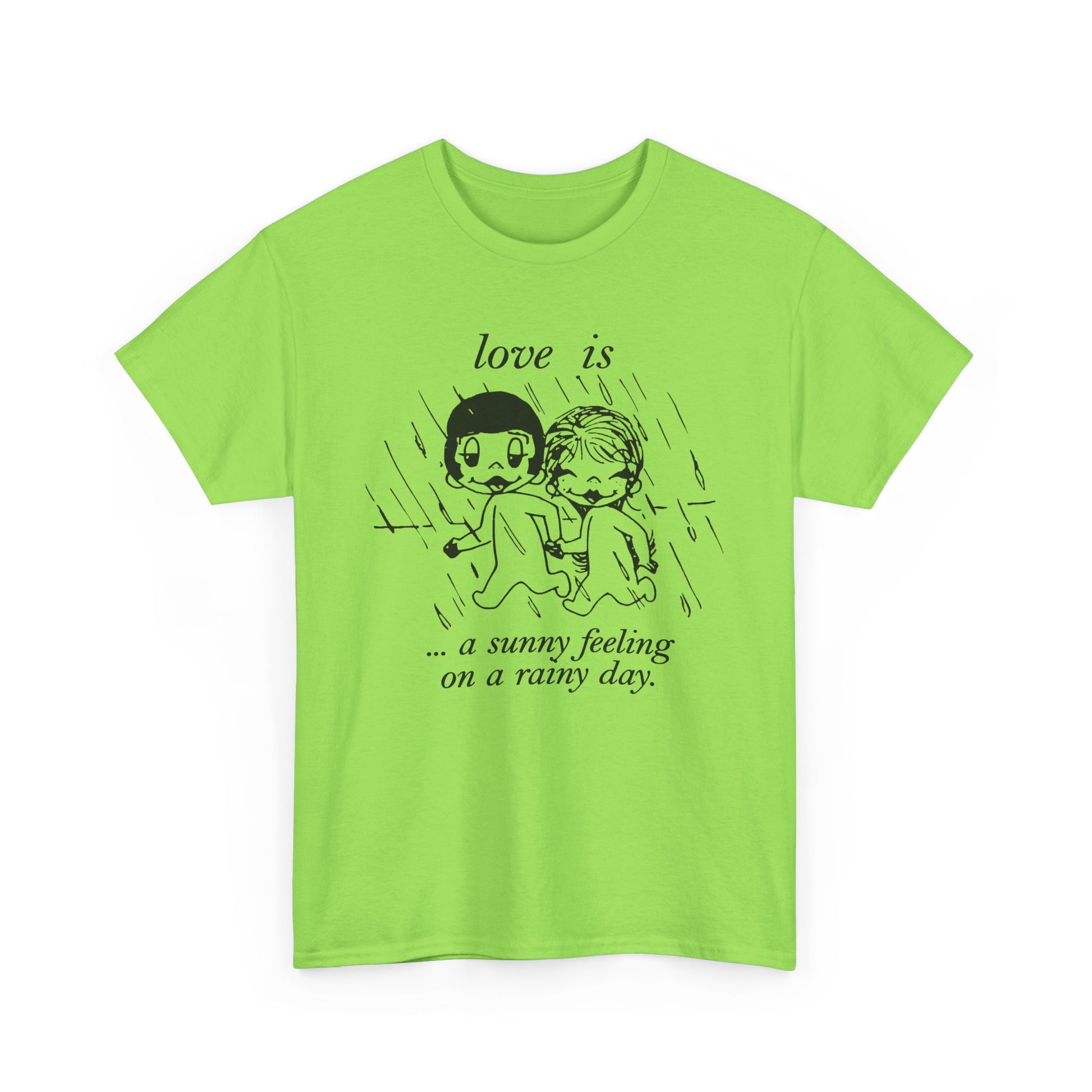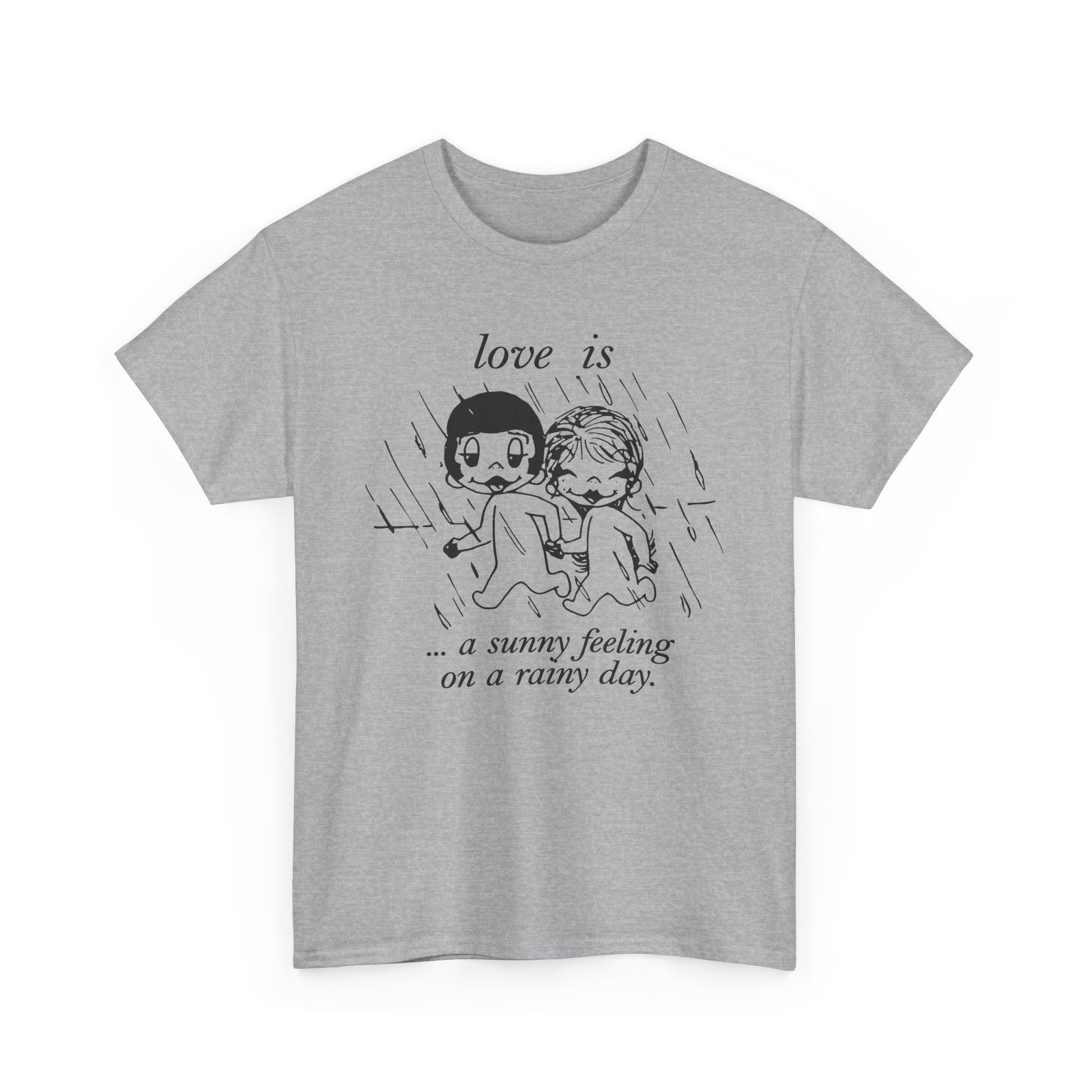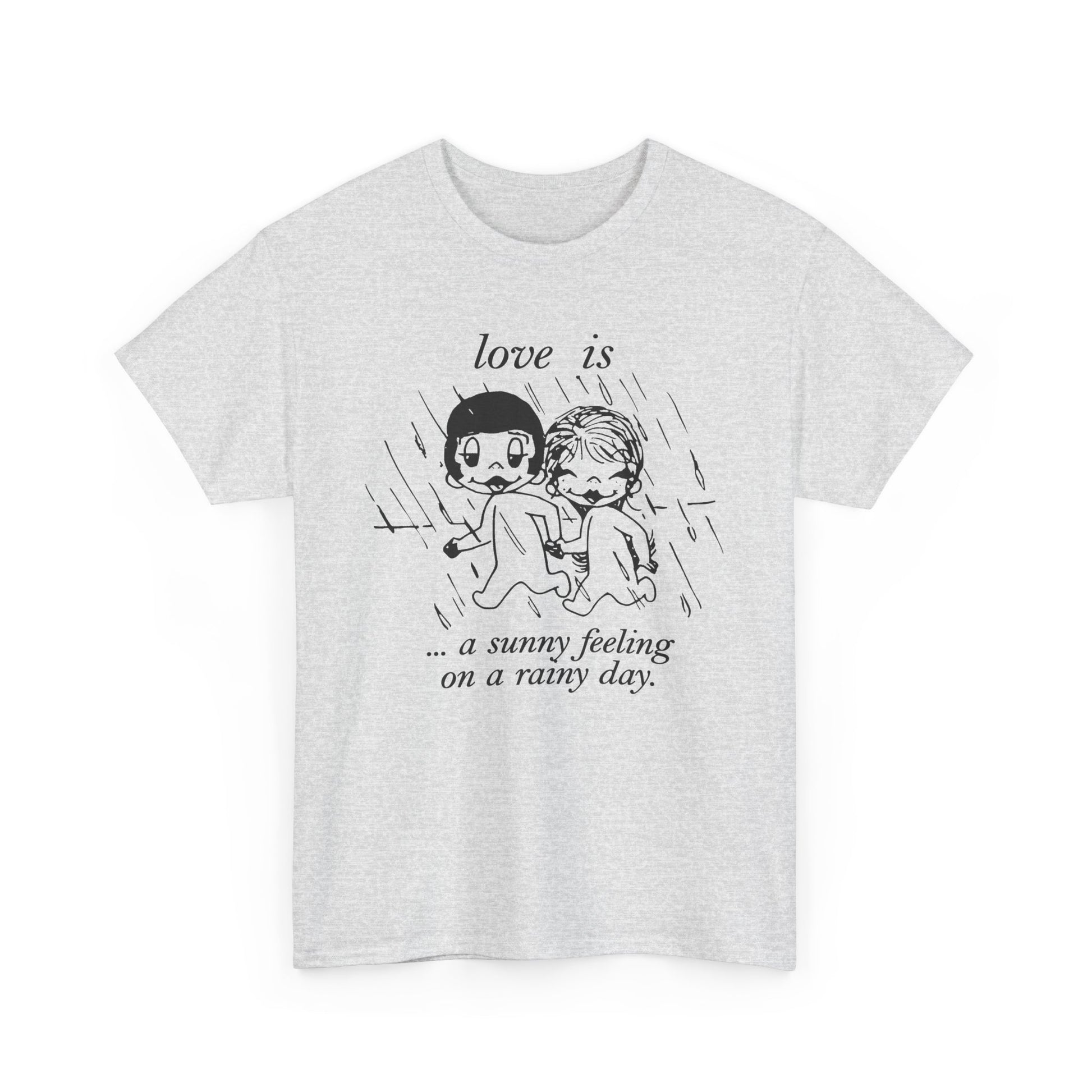 1970 graphic love is a sunny feeling on a rainy day tshirt