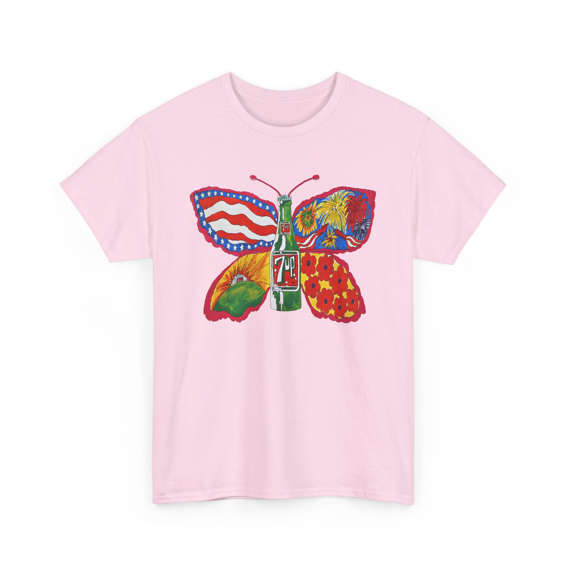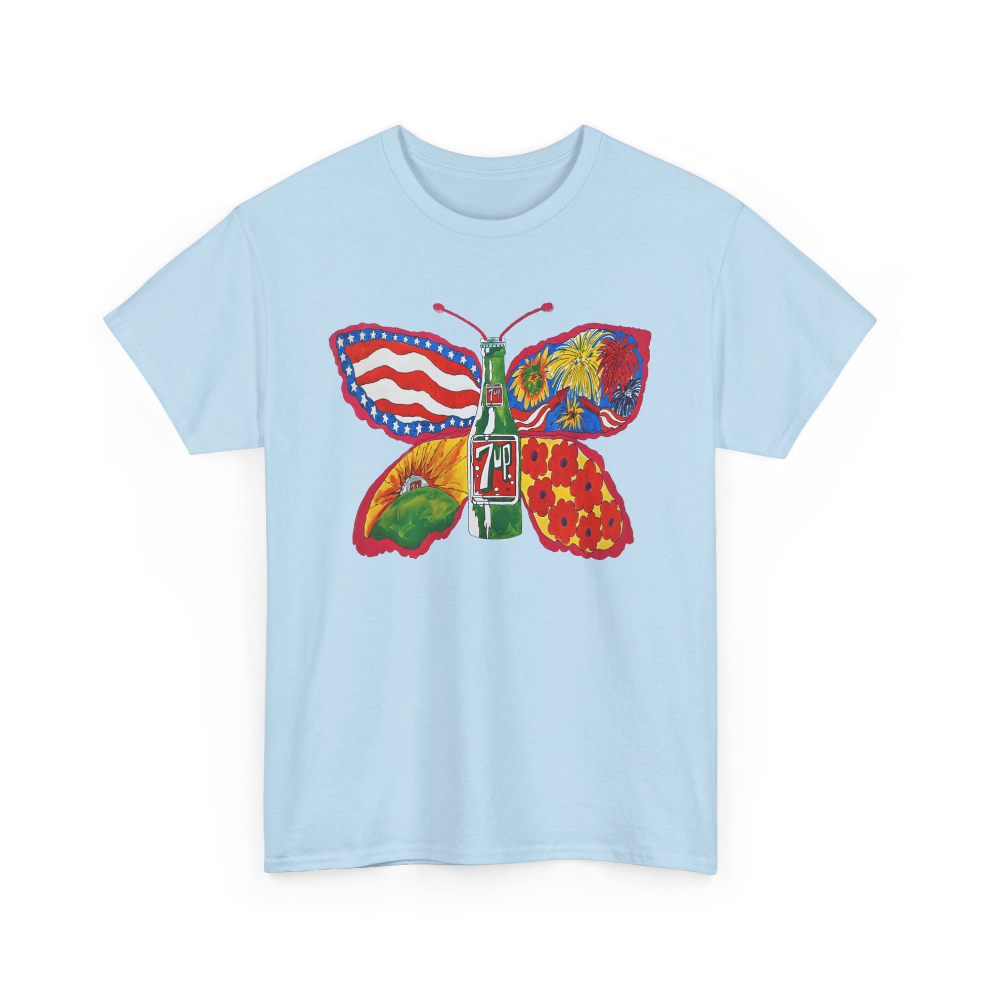1971 psychedelic ad for 7 up butterfly and bottle reproduction custom edit tshirt