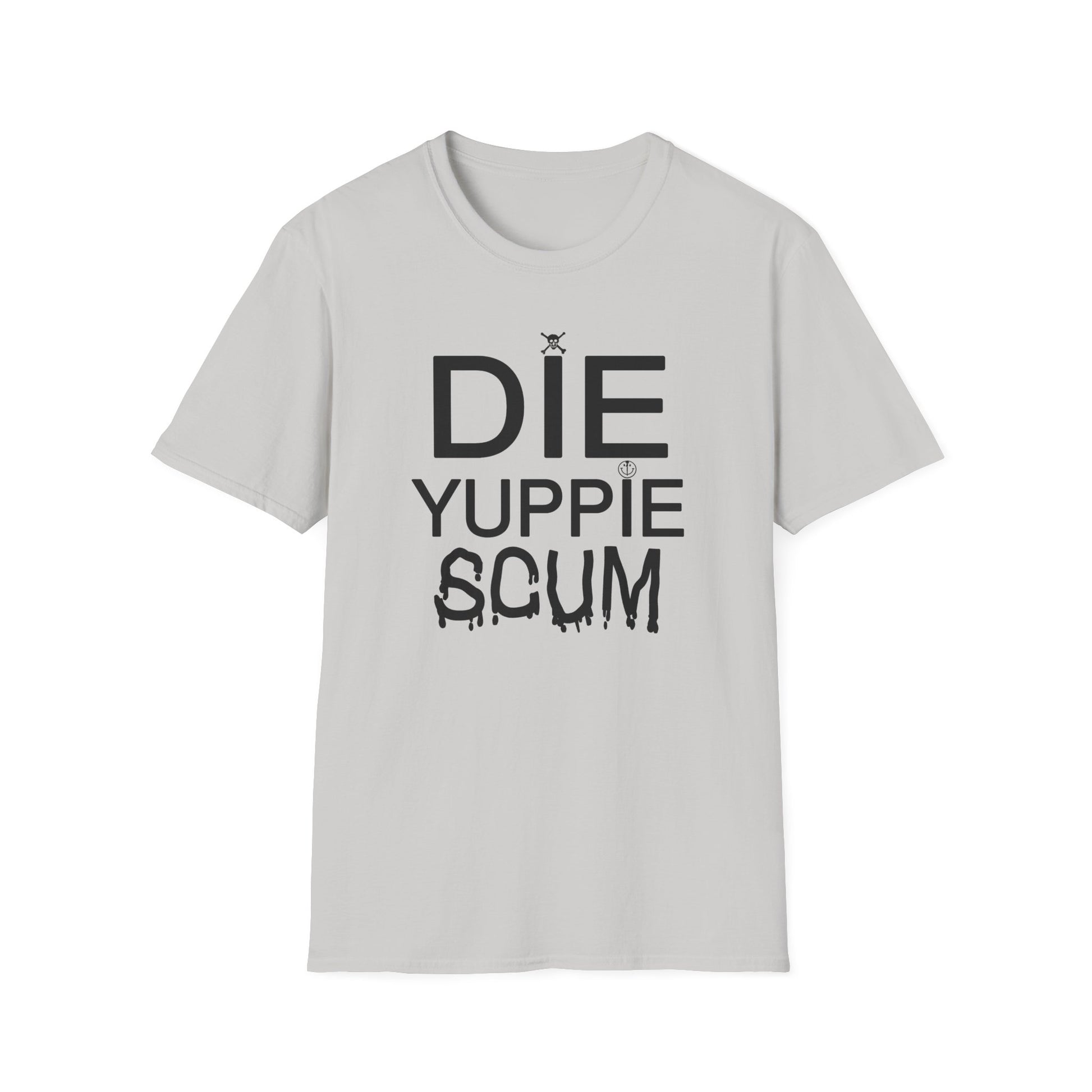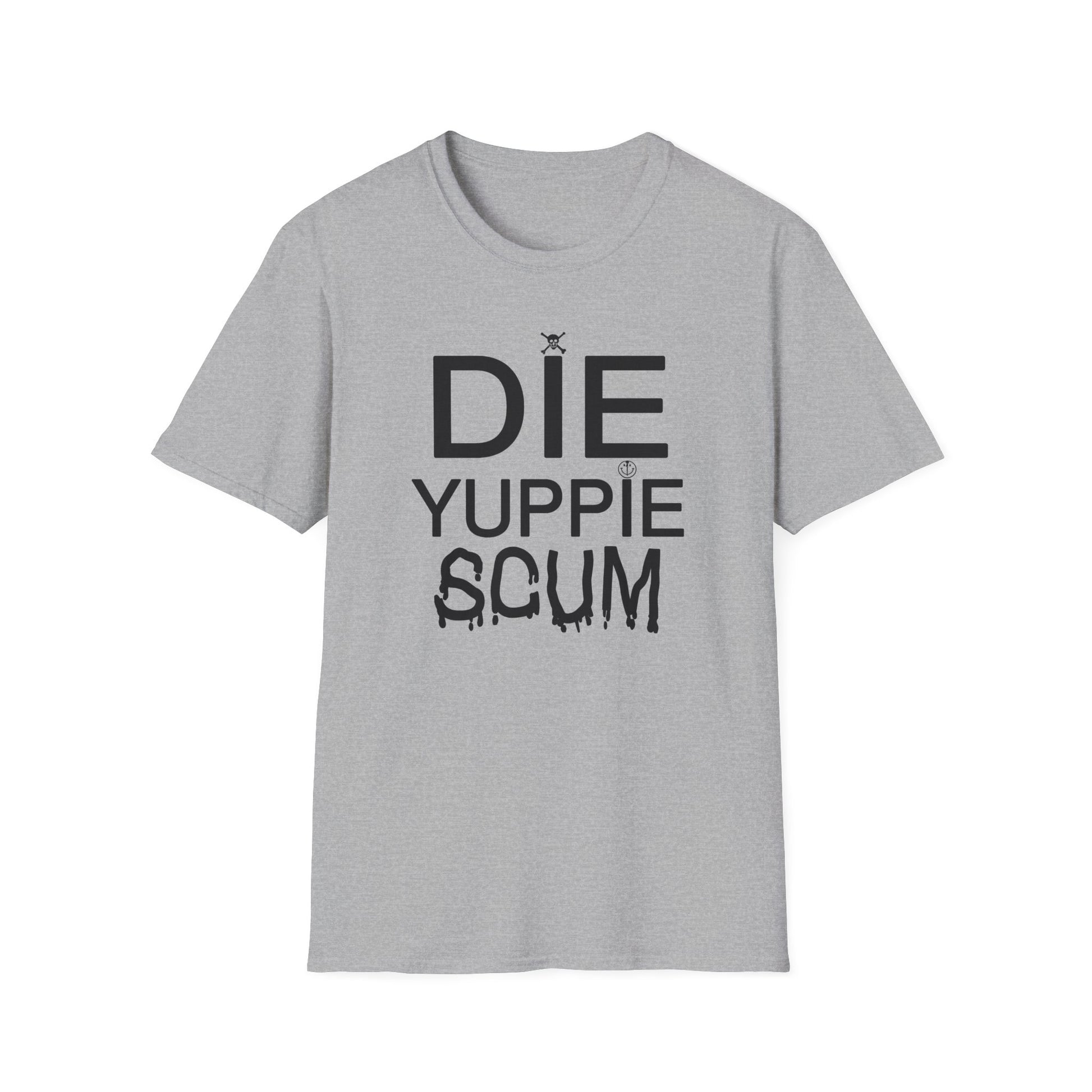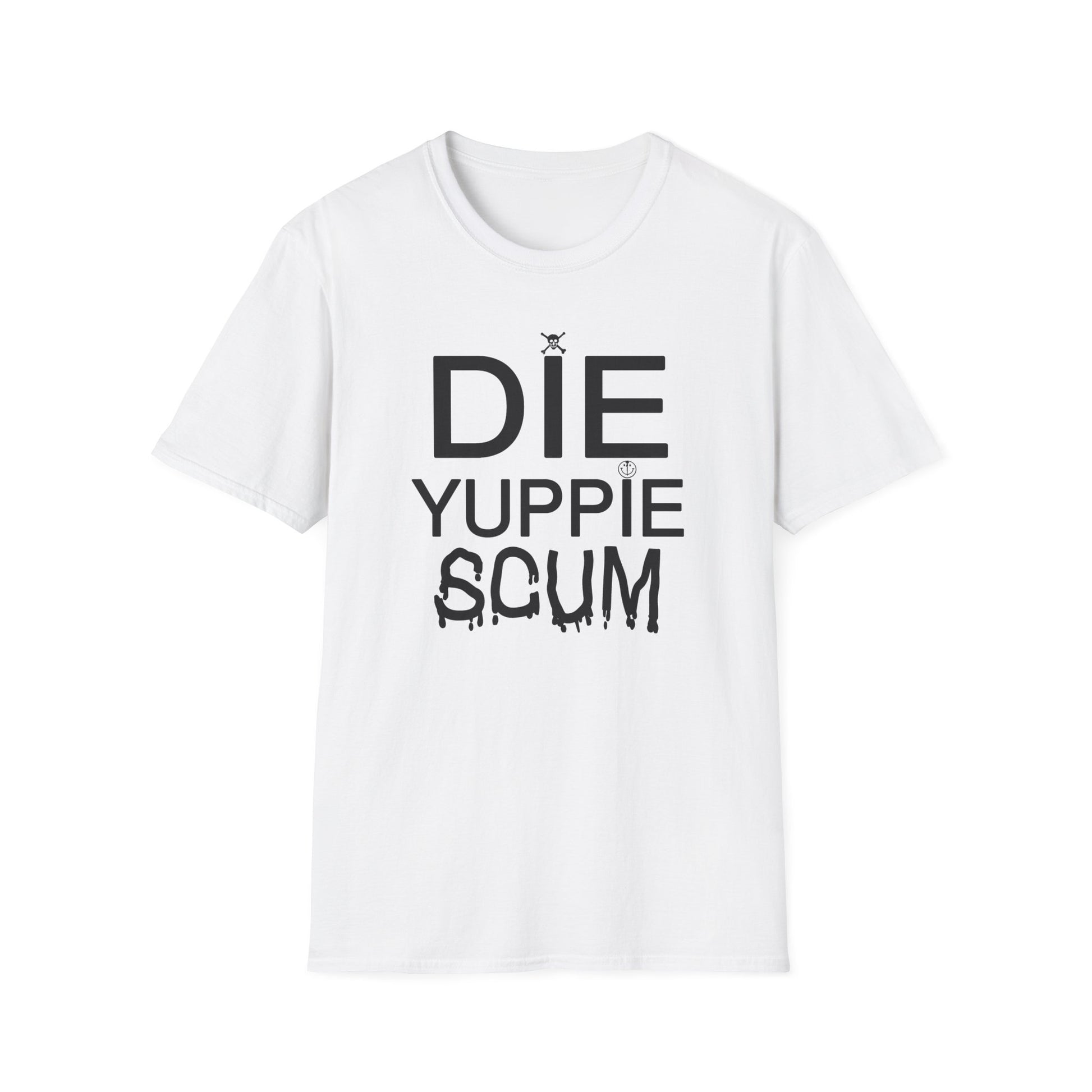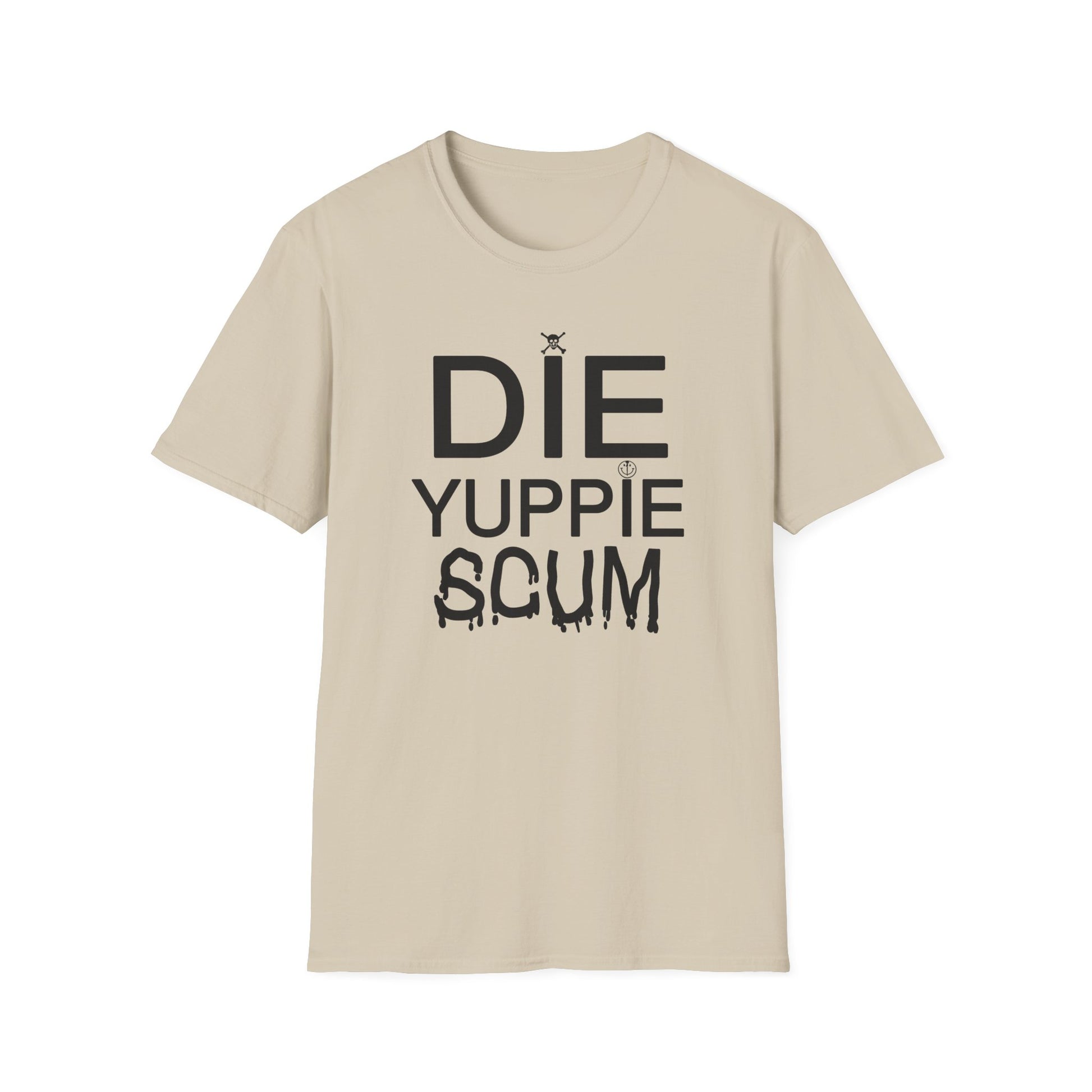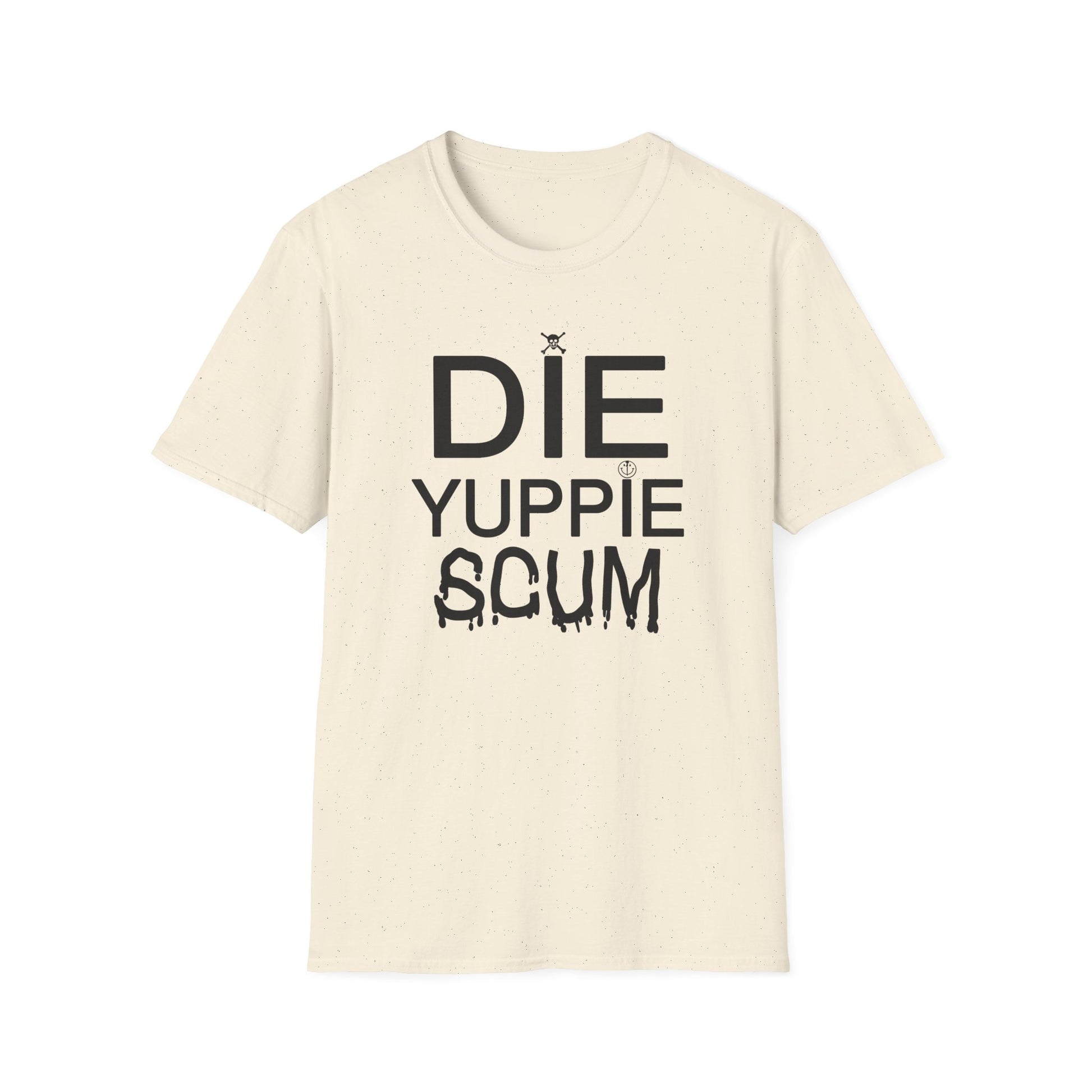 1980s new york inspired anti gentrification message die yuppie scum! tshirt