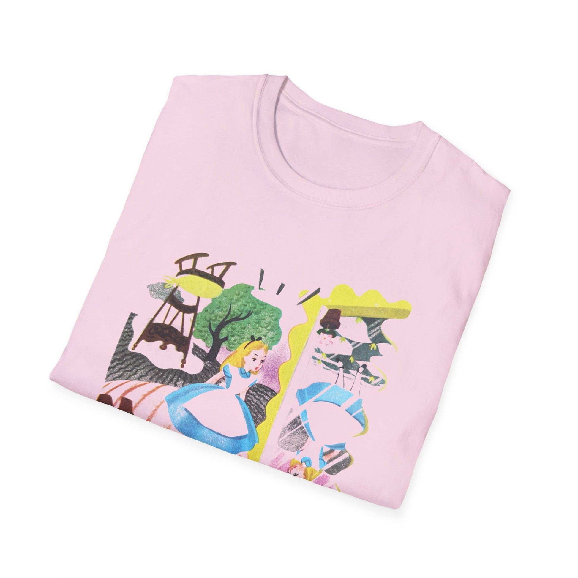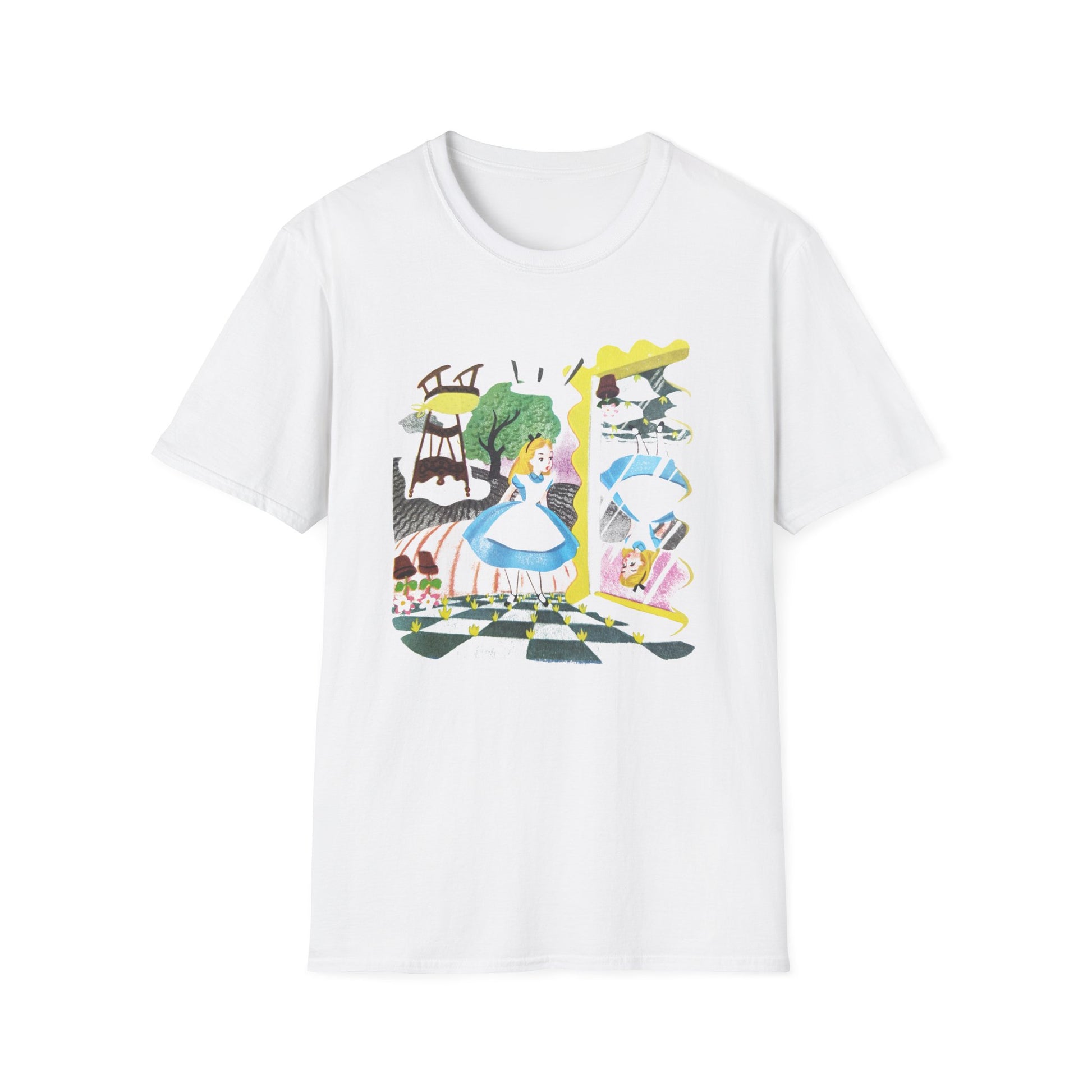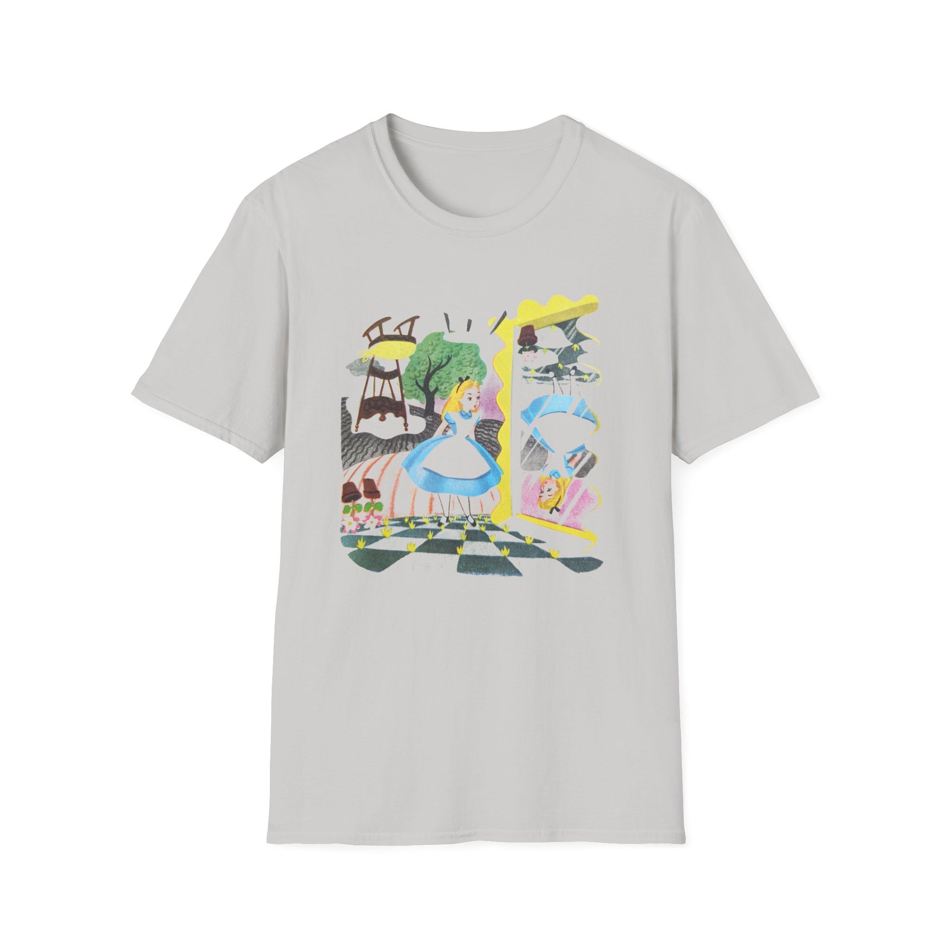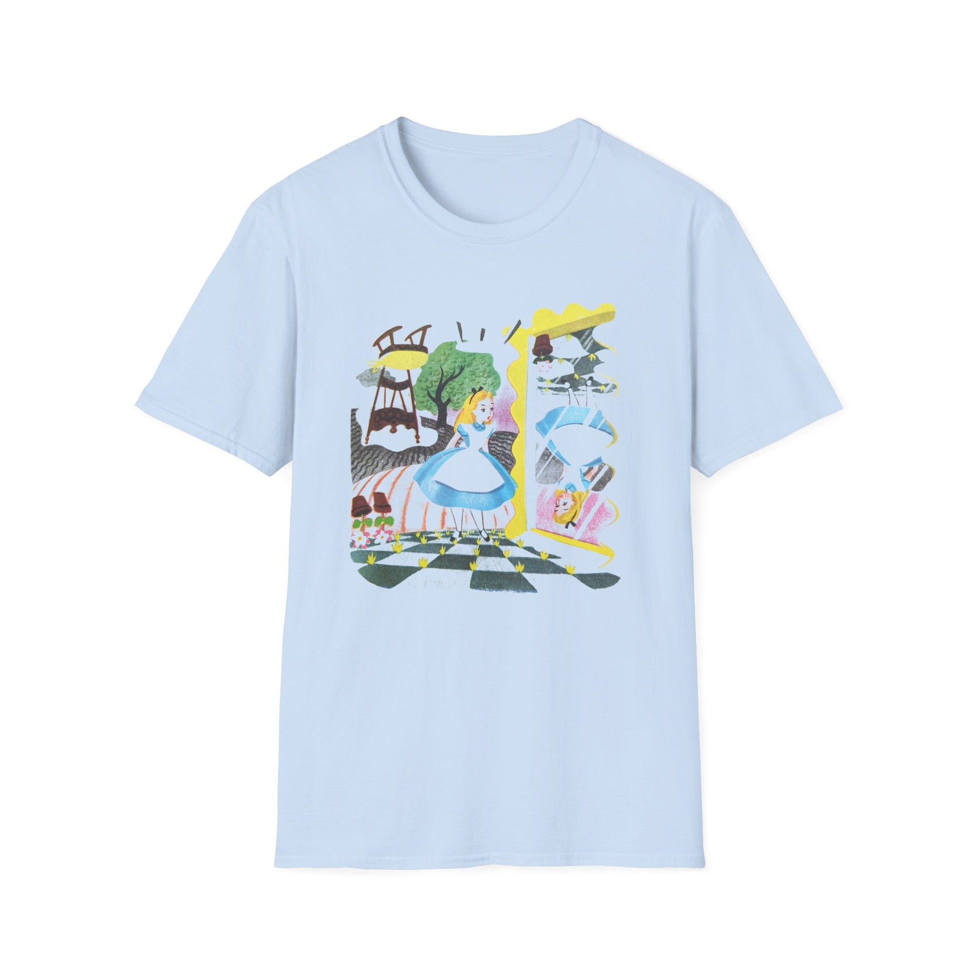 alice in wonderland alice through the looking glass upsidedown illustration tshirt