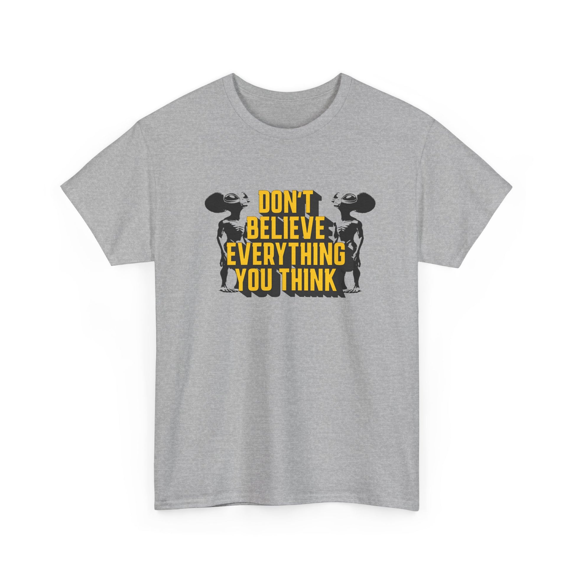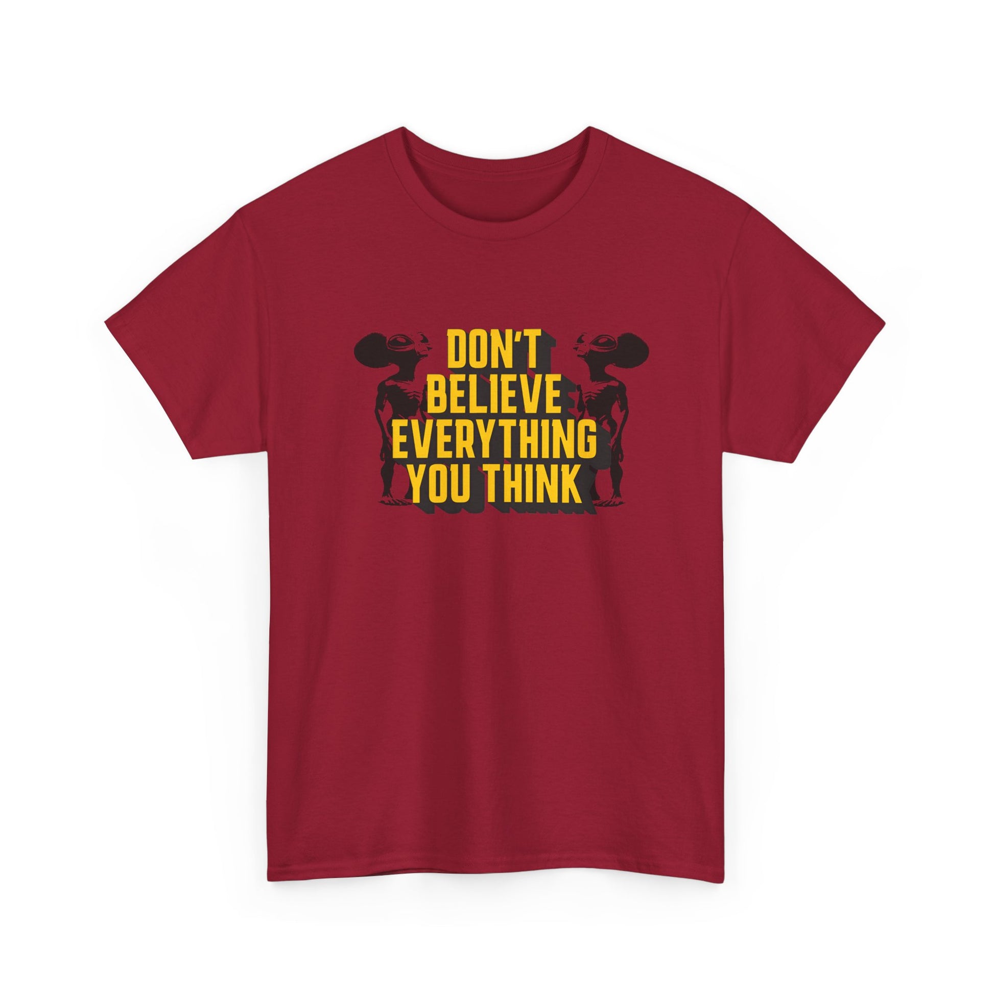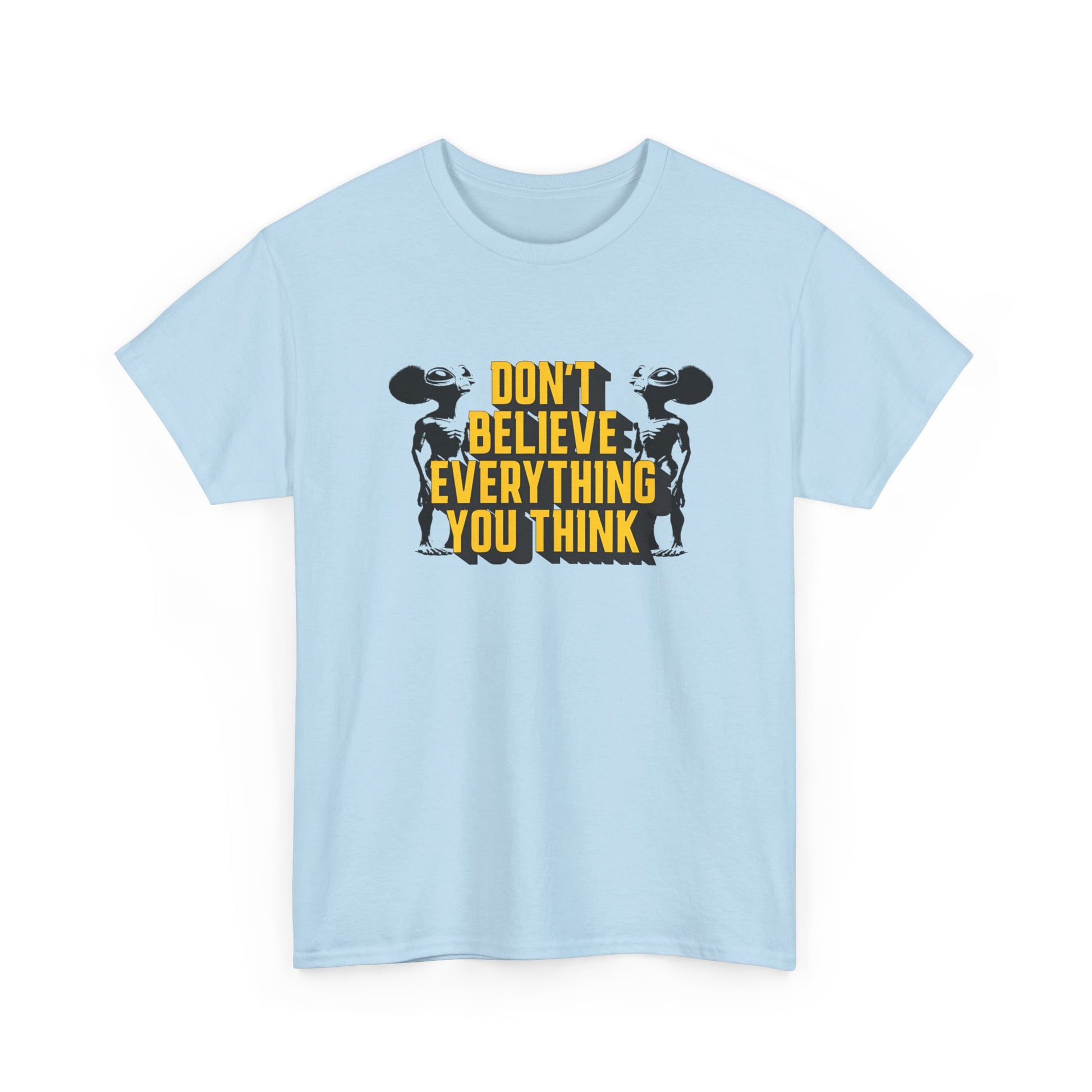 don't believe everything you think alien character tshirt