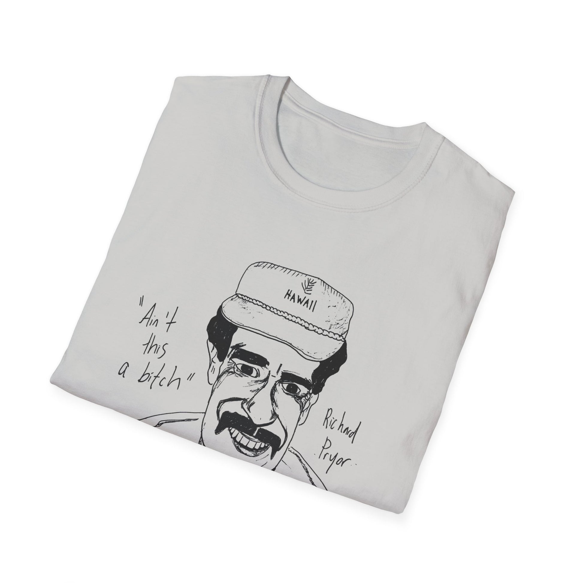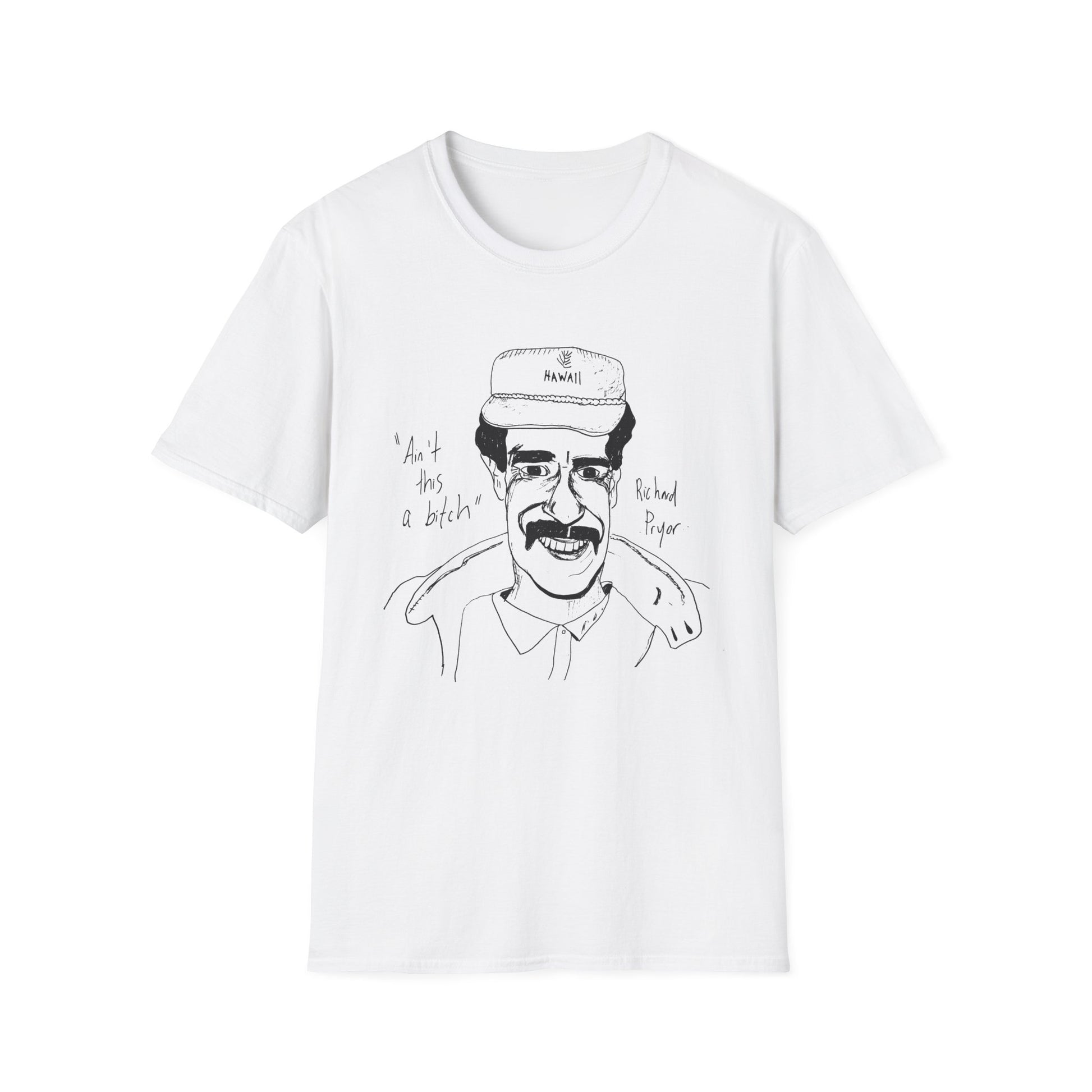 fan art and original drawing of a popular 1980s comedian on a tshirt ain't this a bitch kind of looks like him