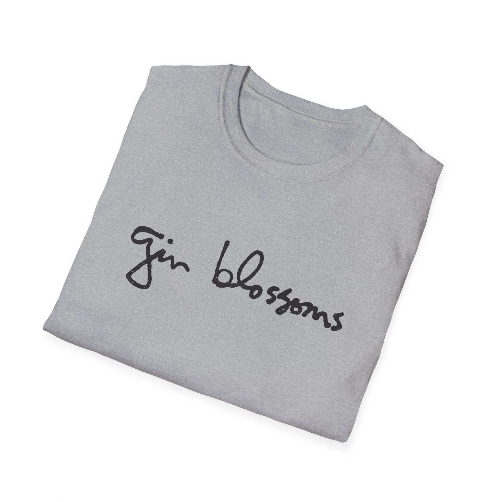 gin blossoms logo in black tshirt