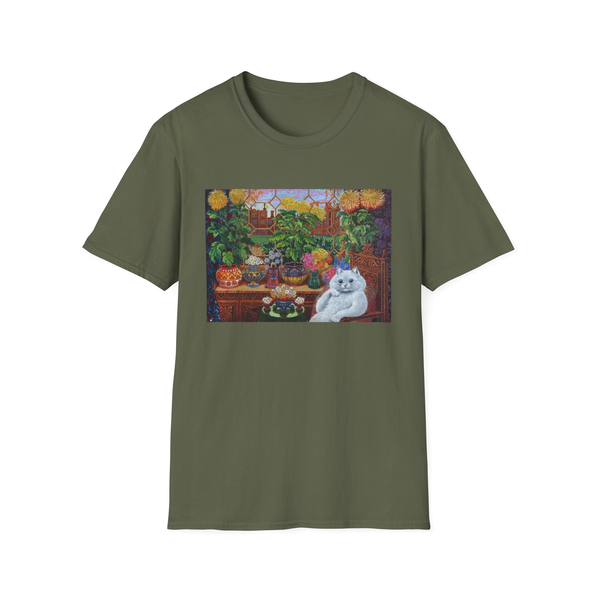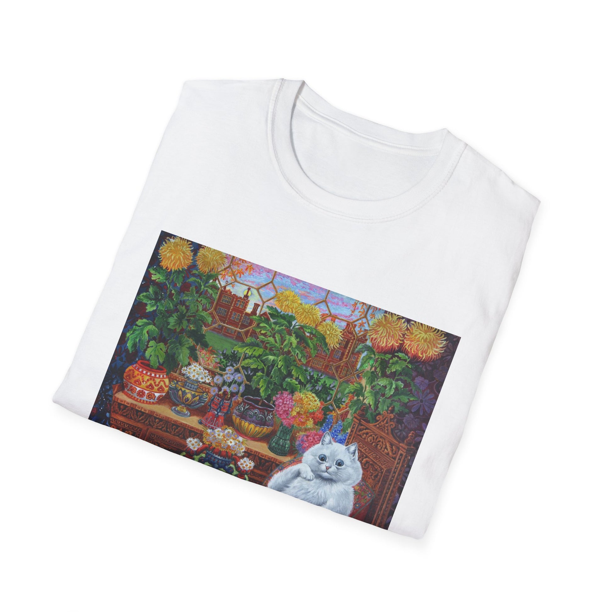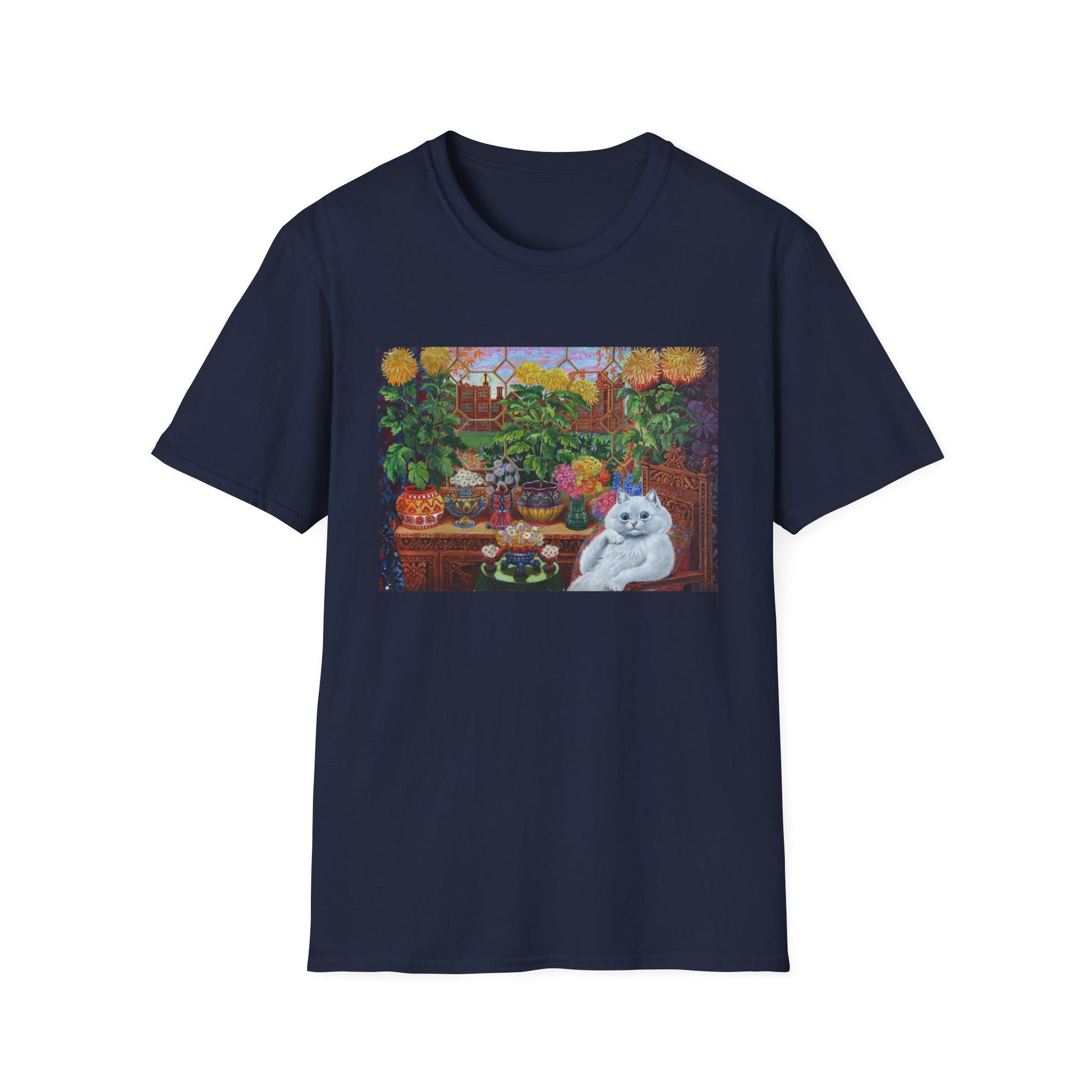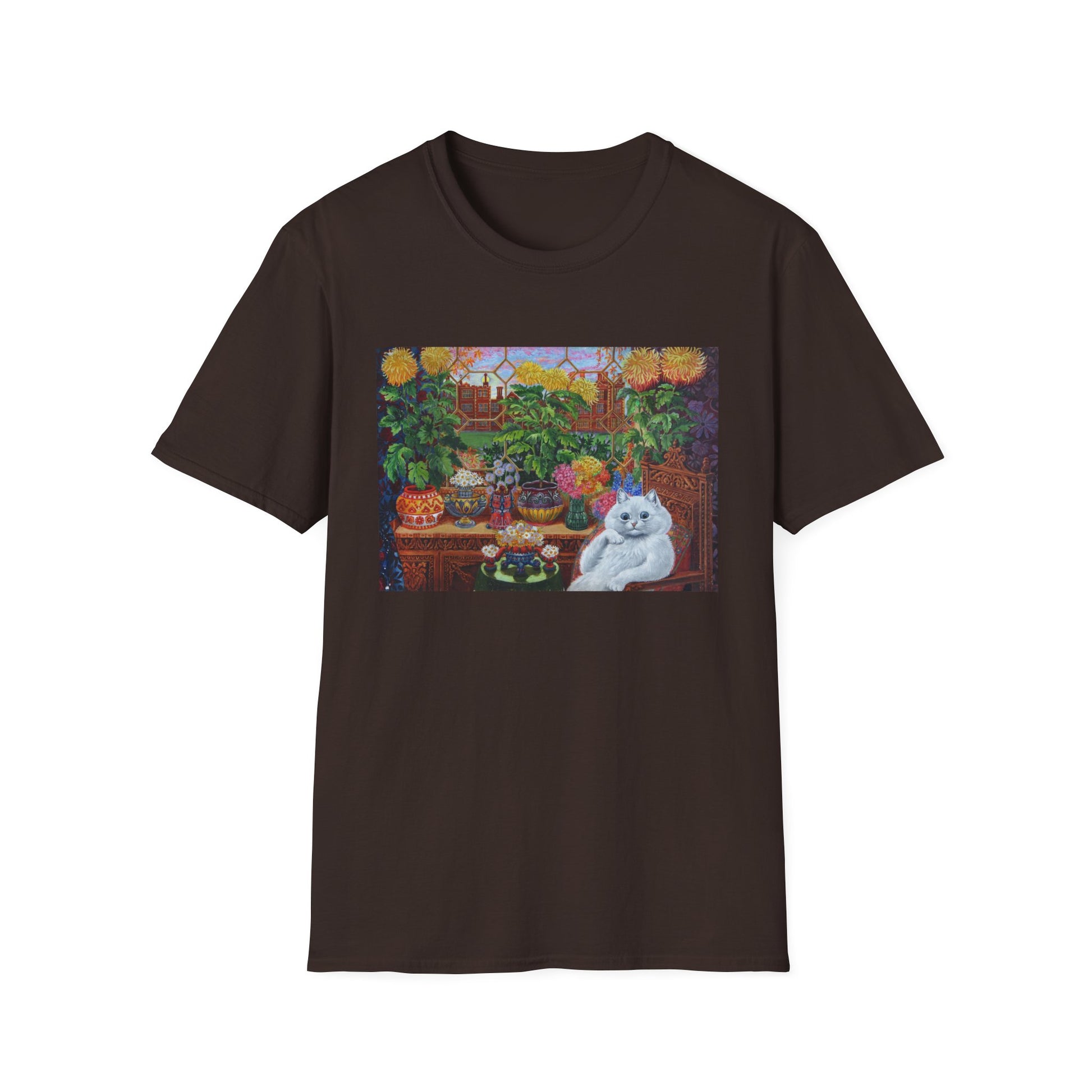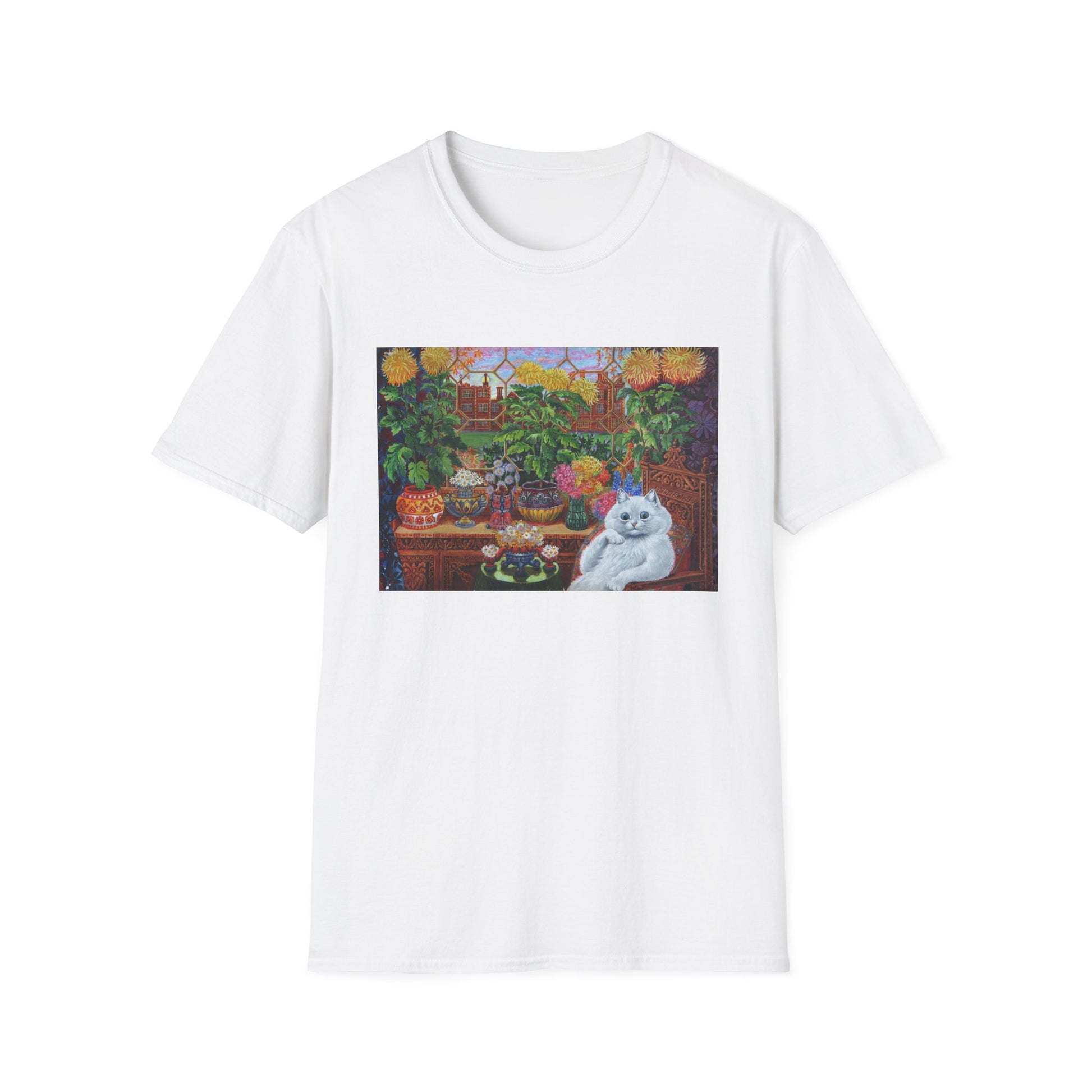louis wain thinking cat with flowers tshirt