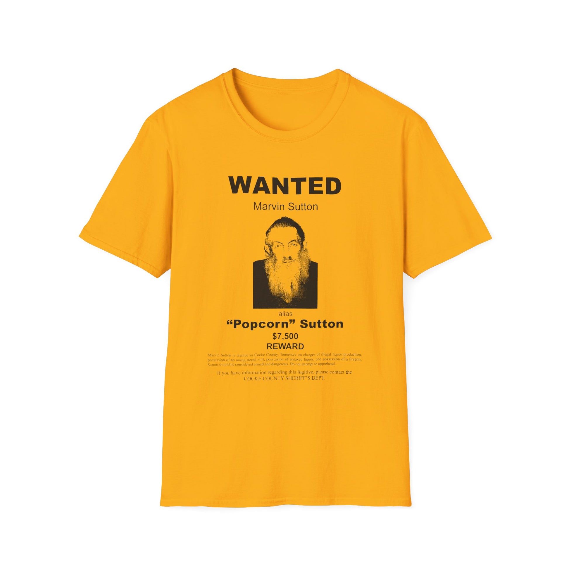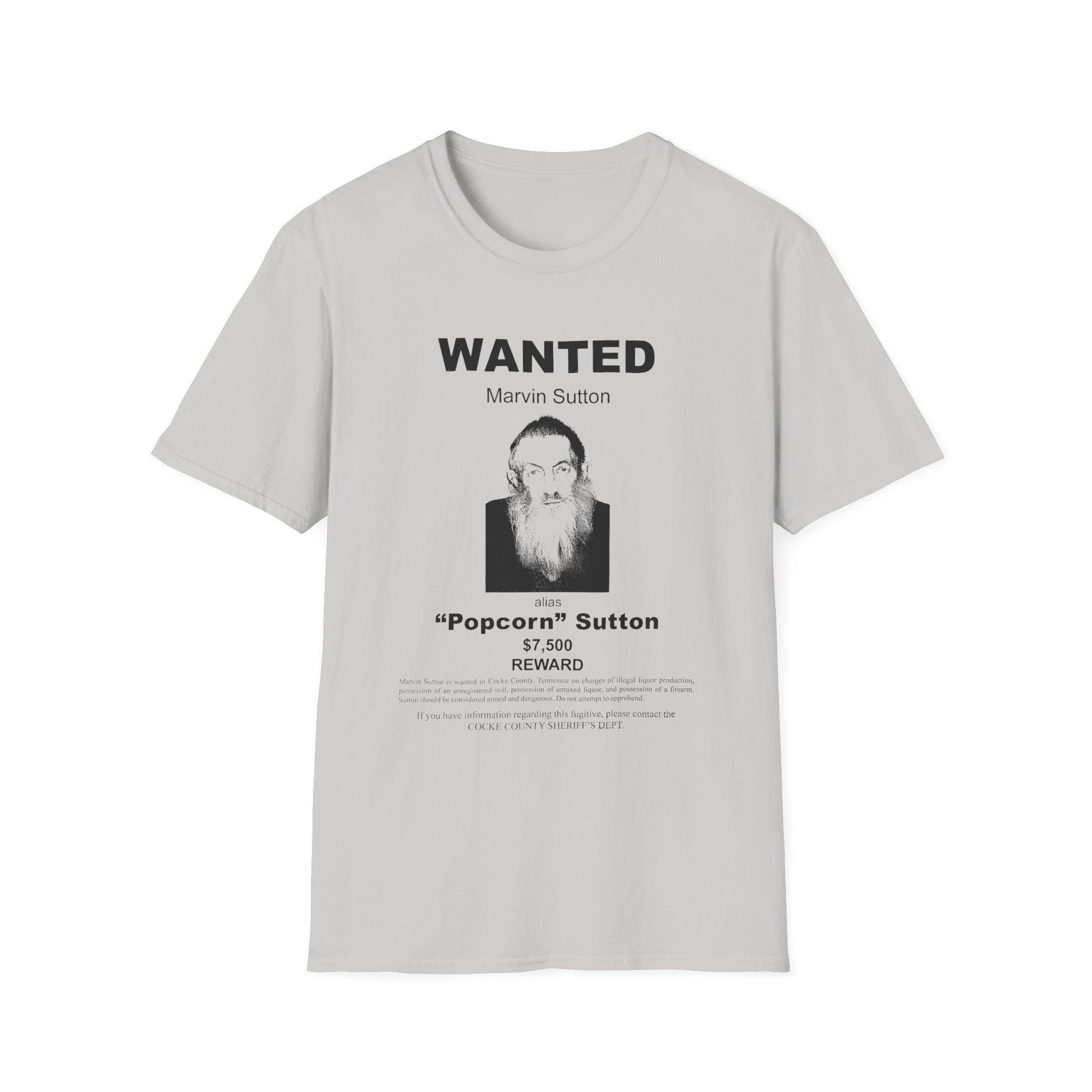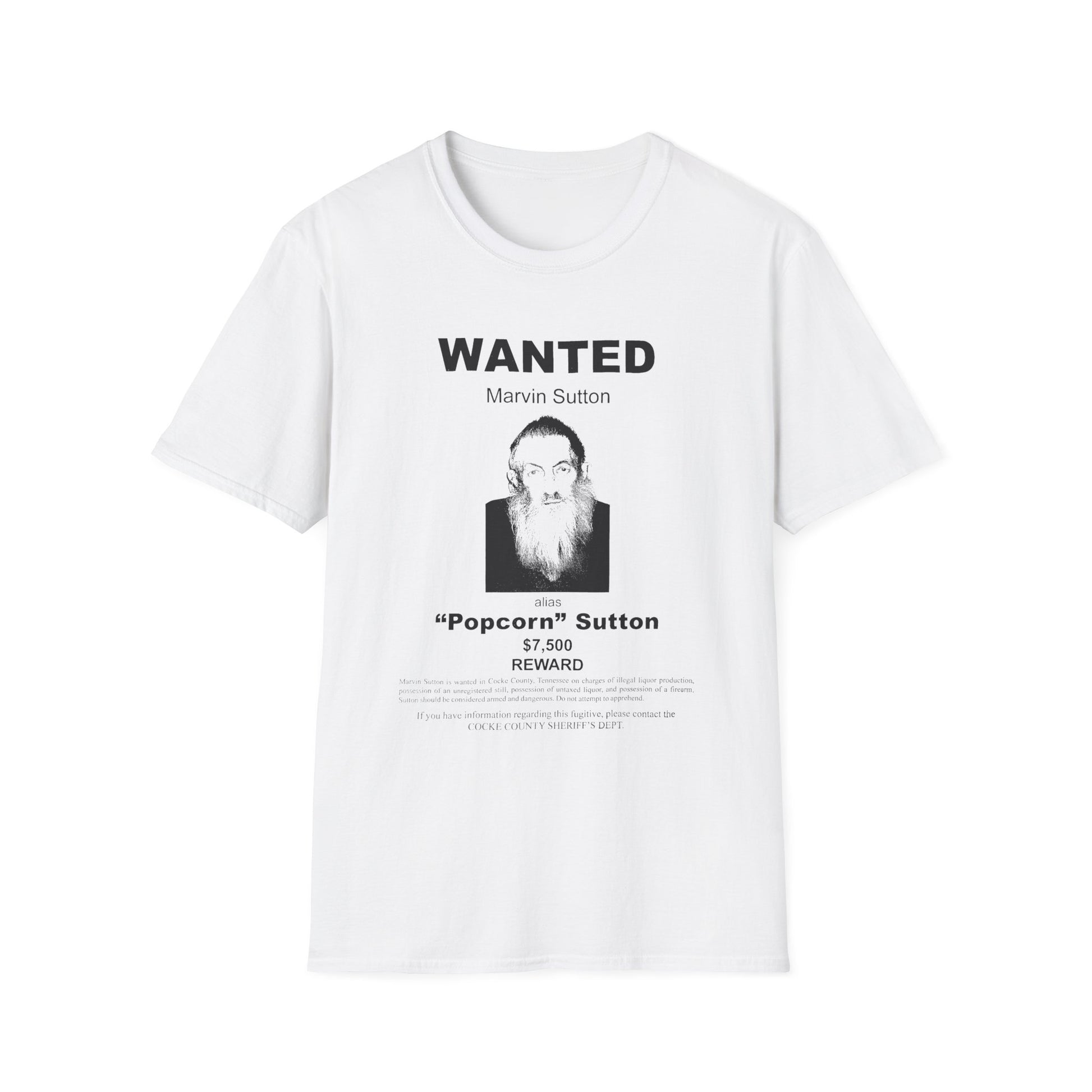 popcorn sutton's famous wanted poster tshirt