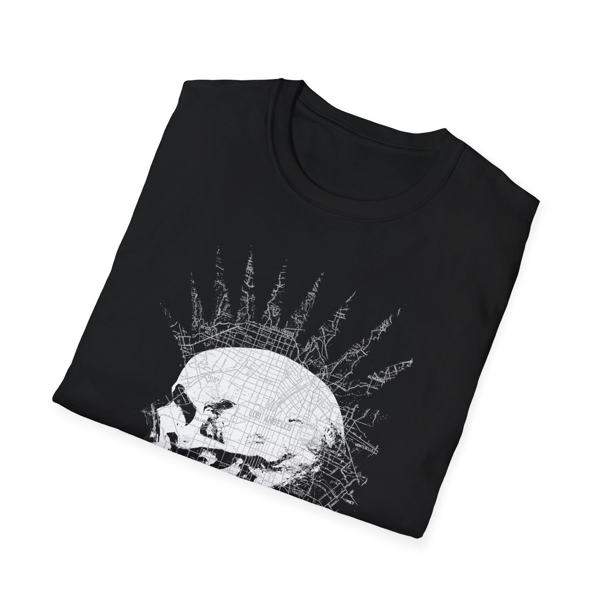 repo man skull punk in black and white with green letters tshirt