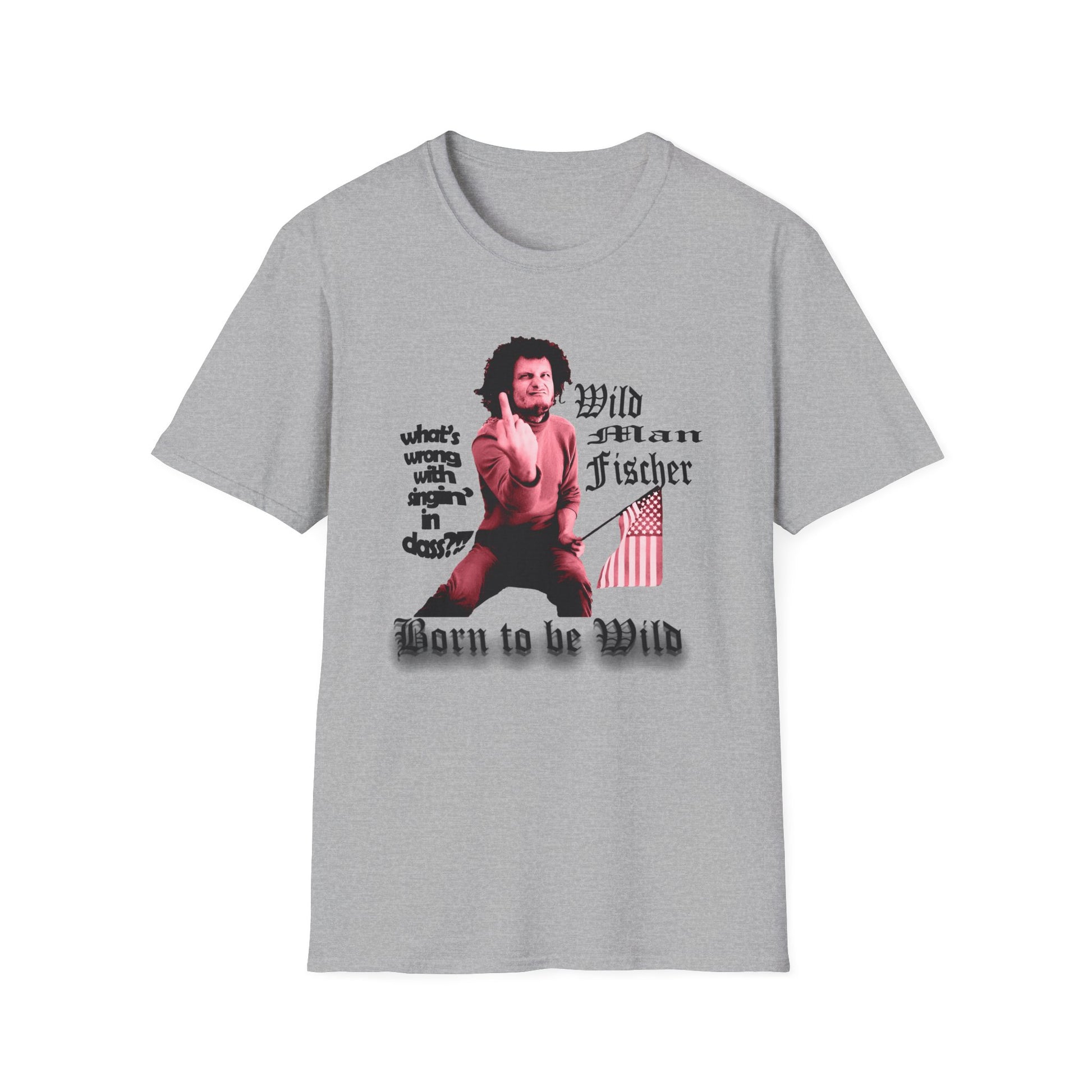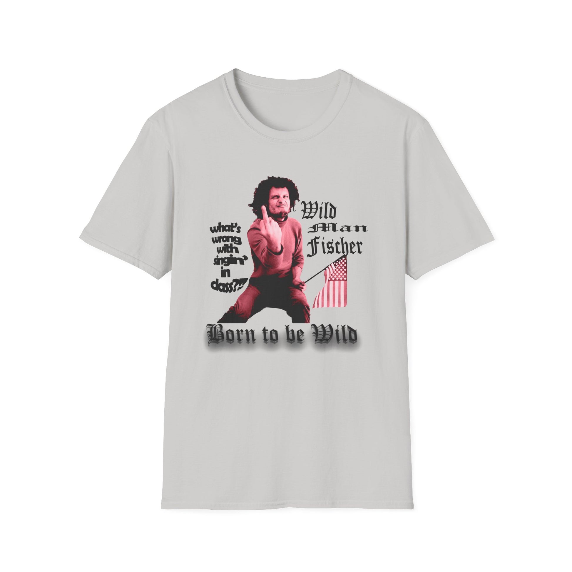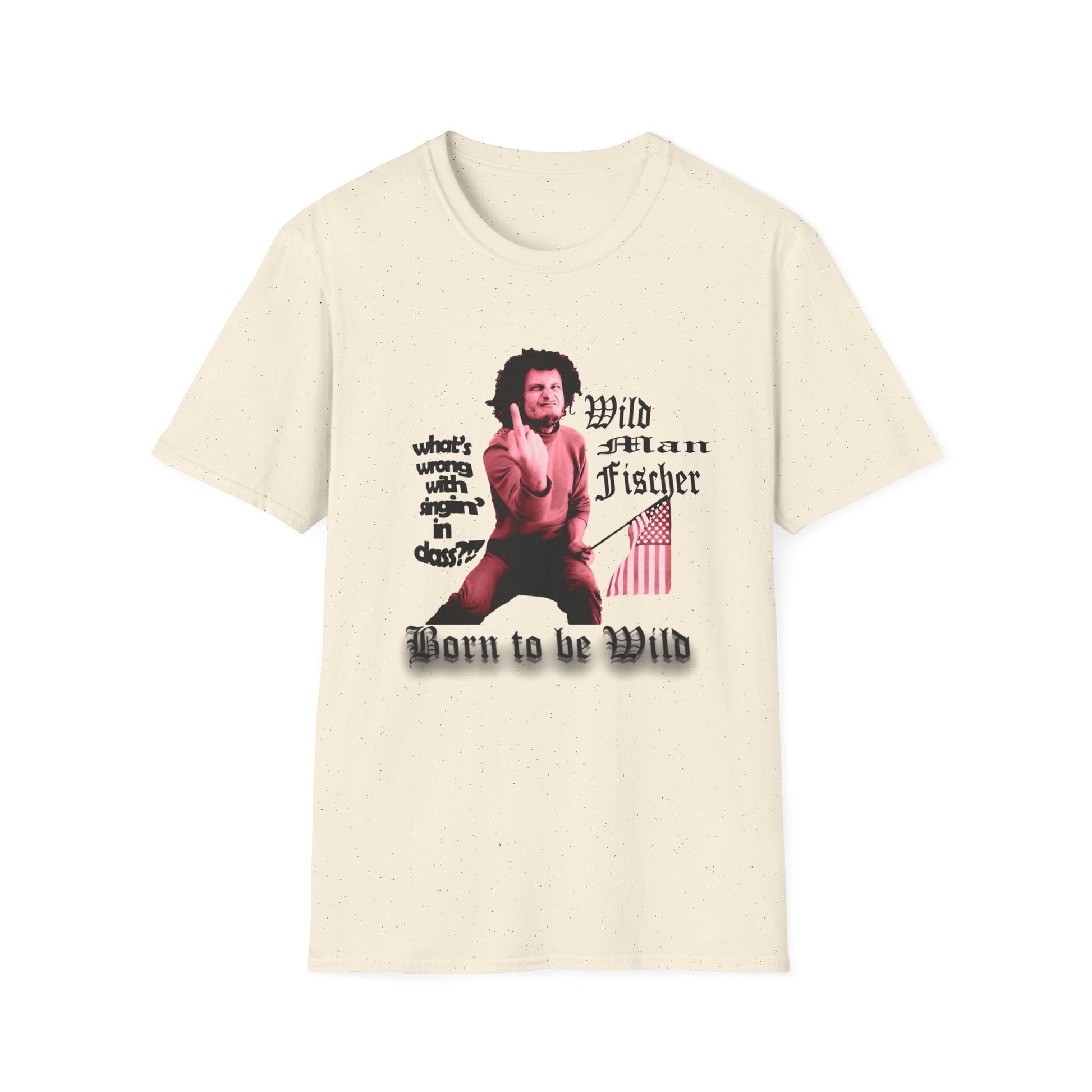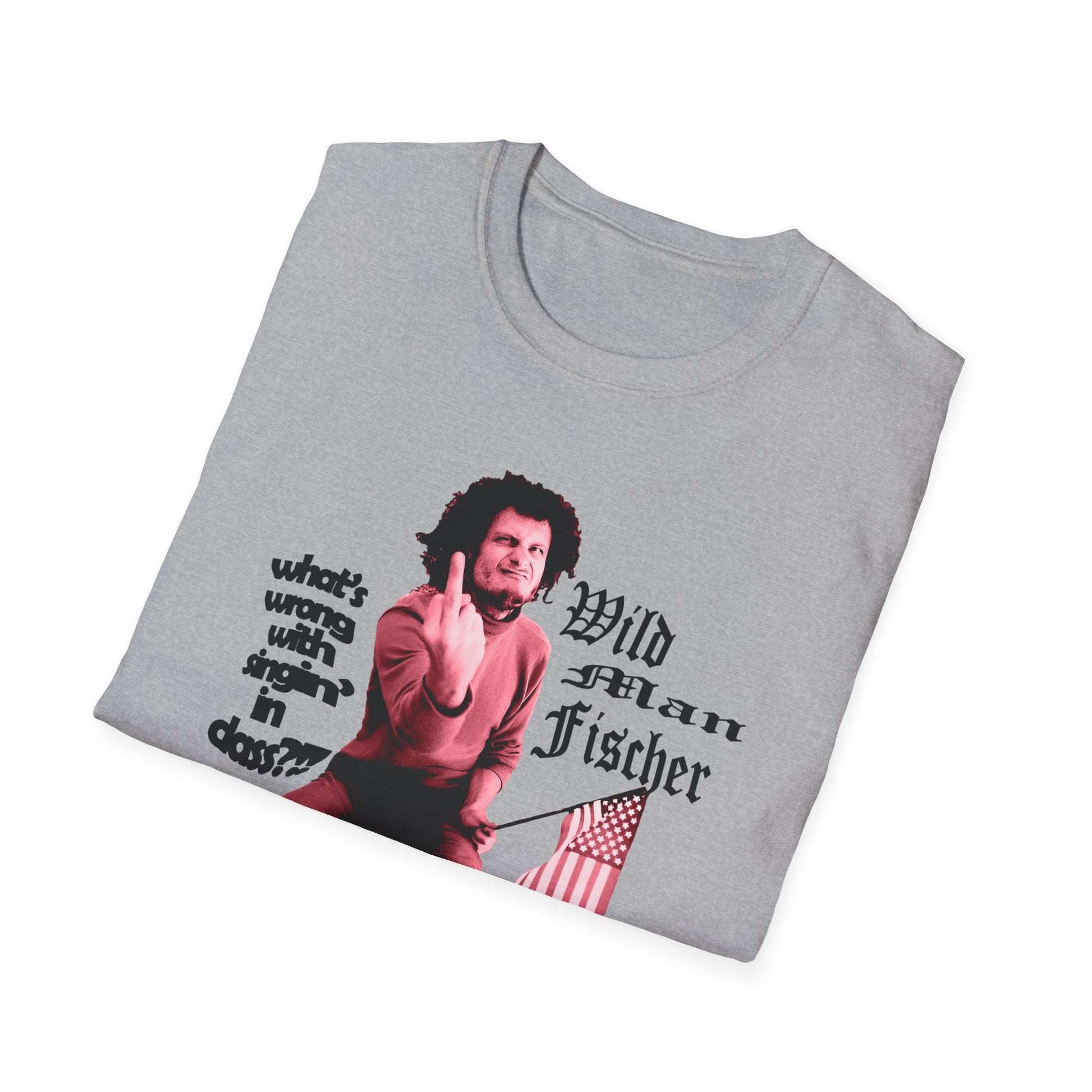 wild man fischer middle finger in red tshirt