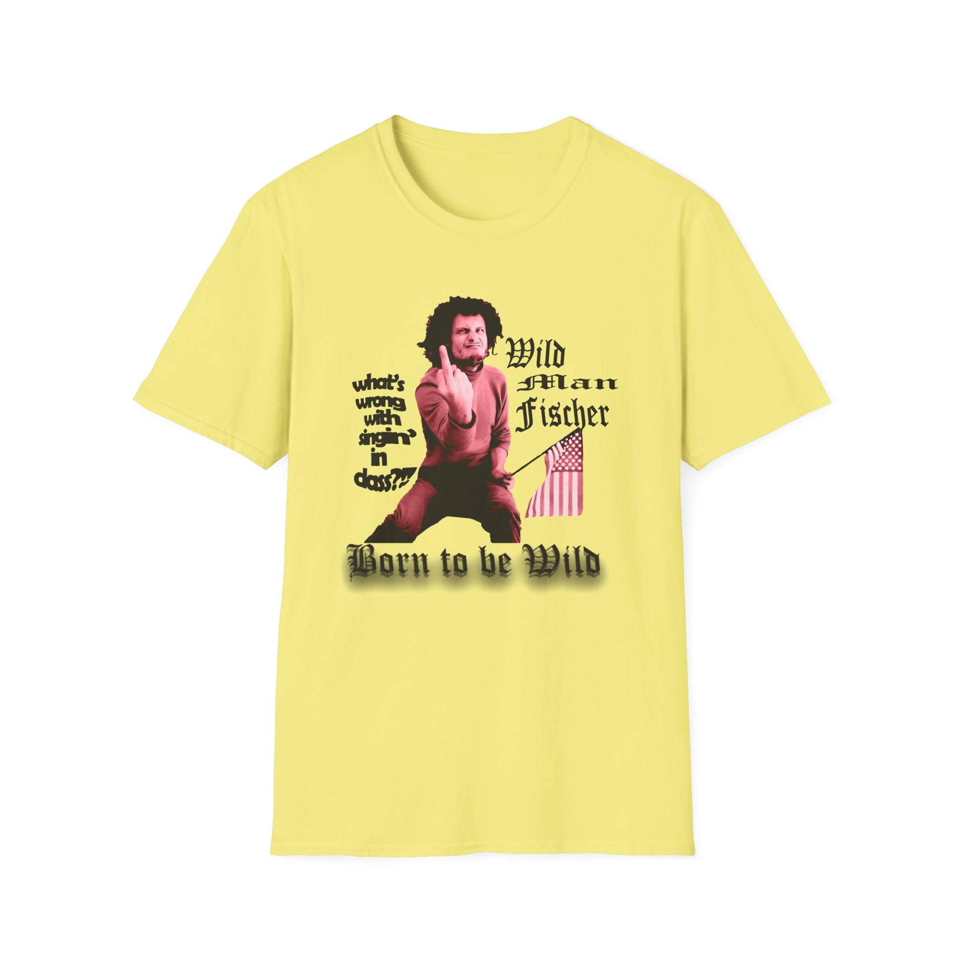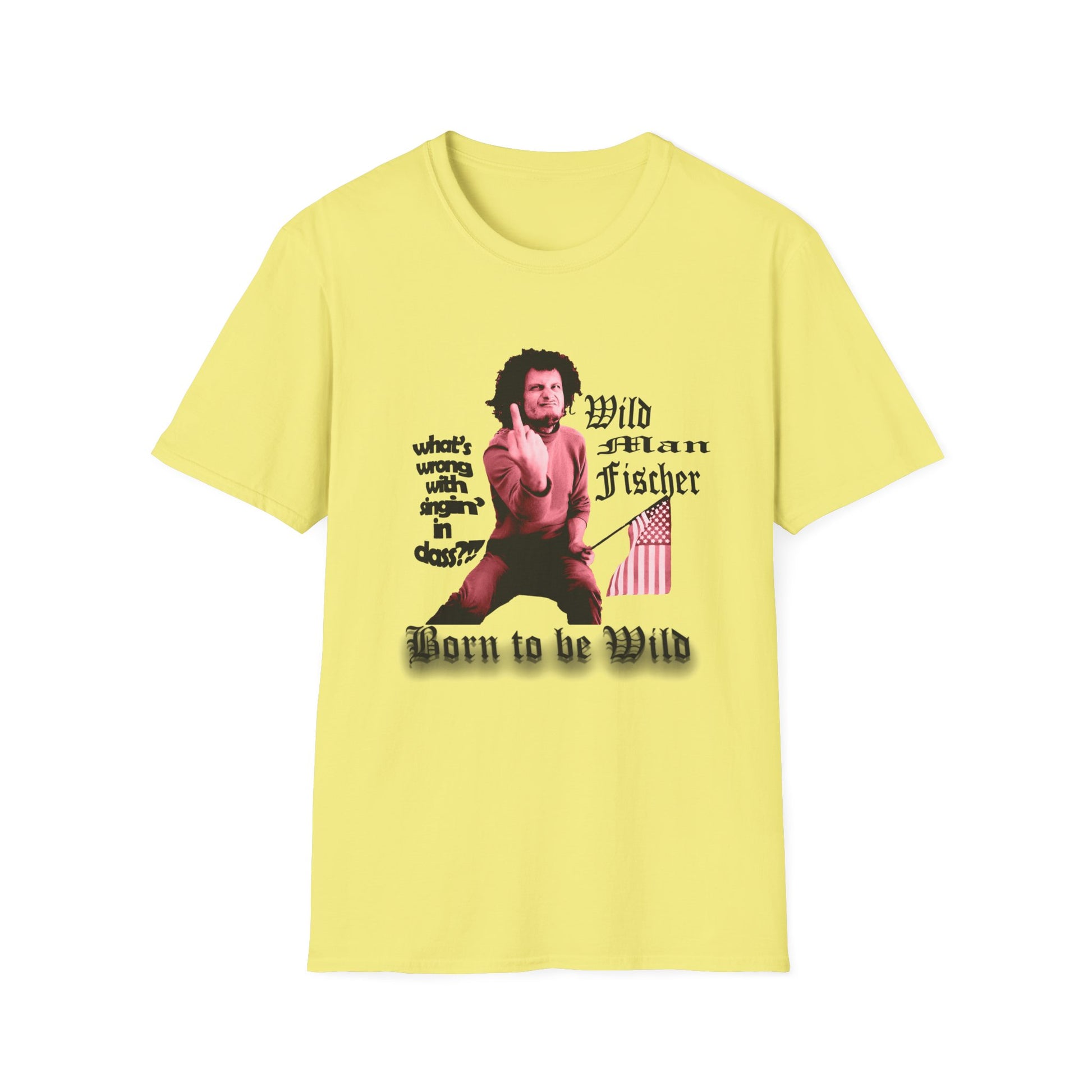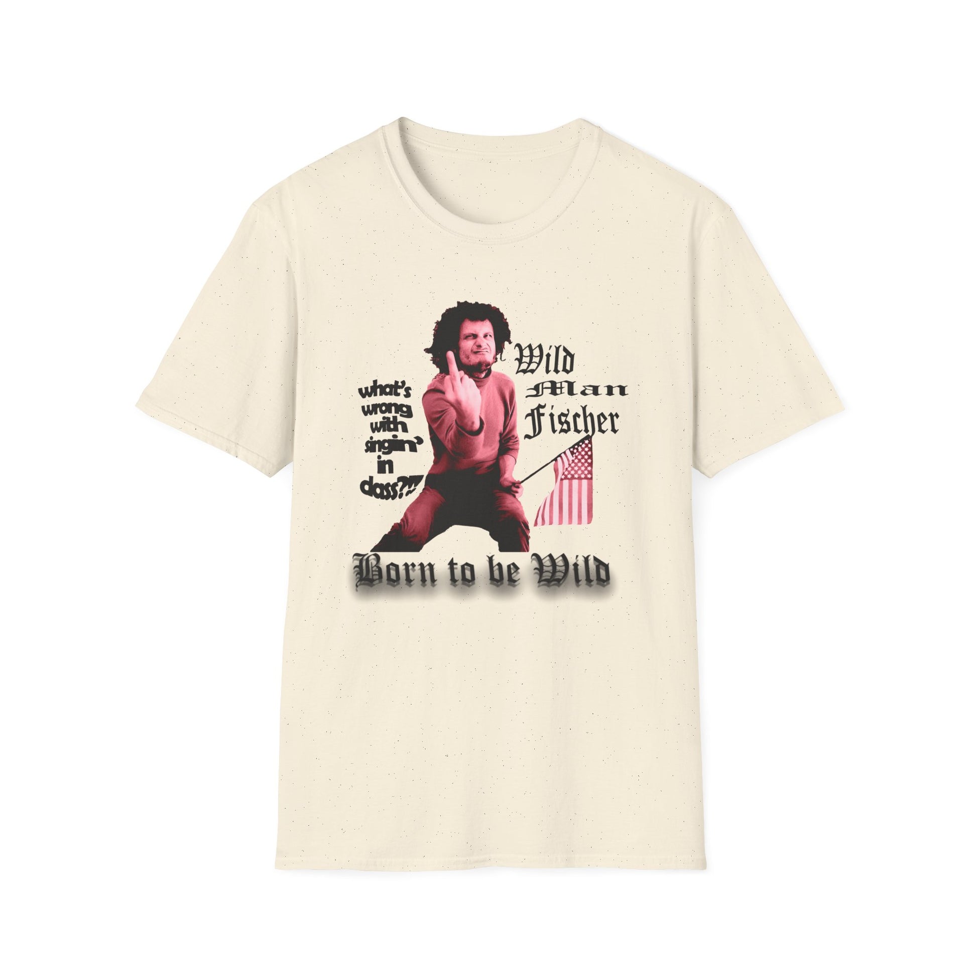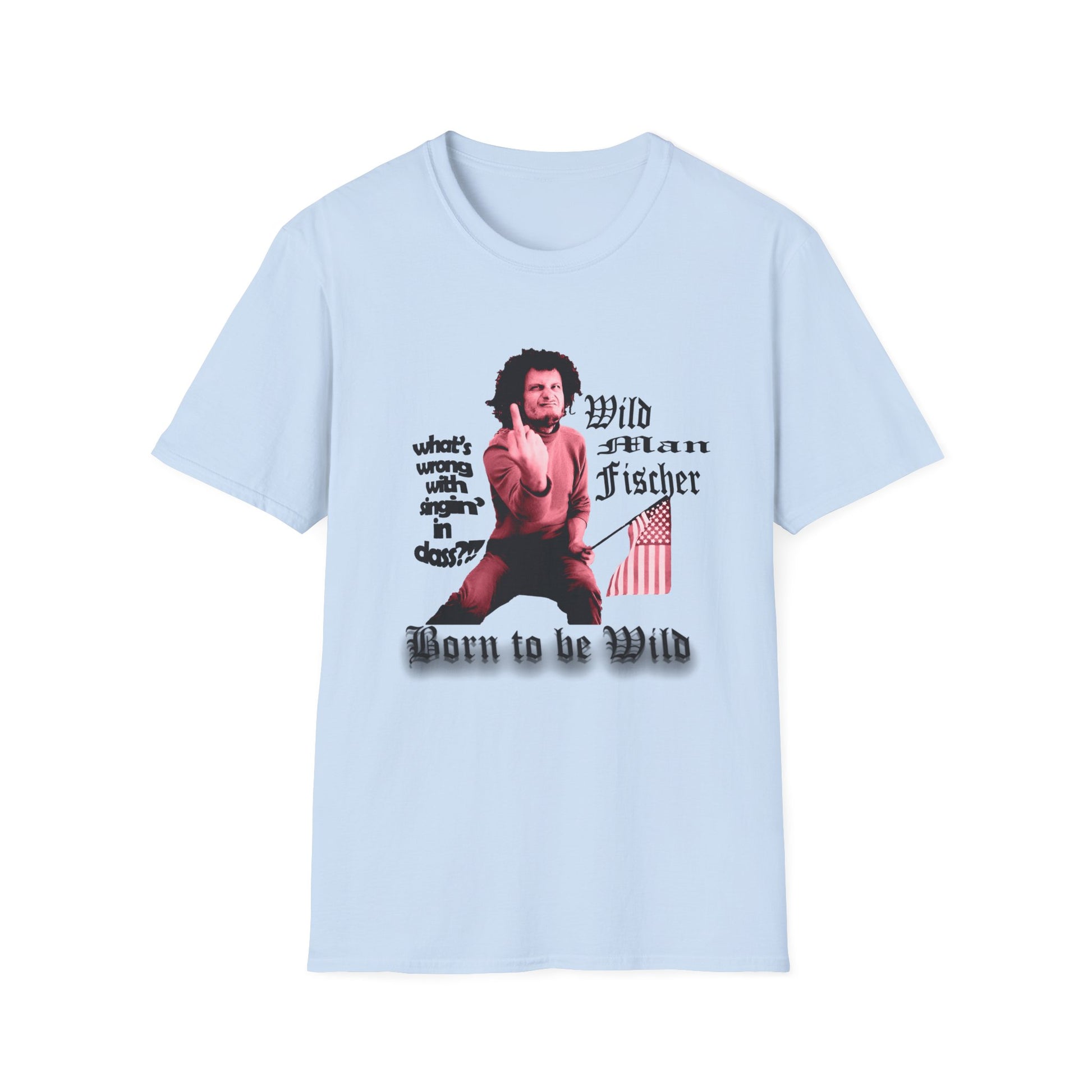 wild man fischer middle finger in red tshirt